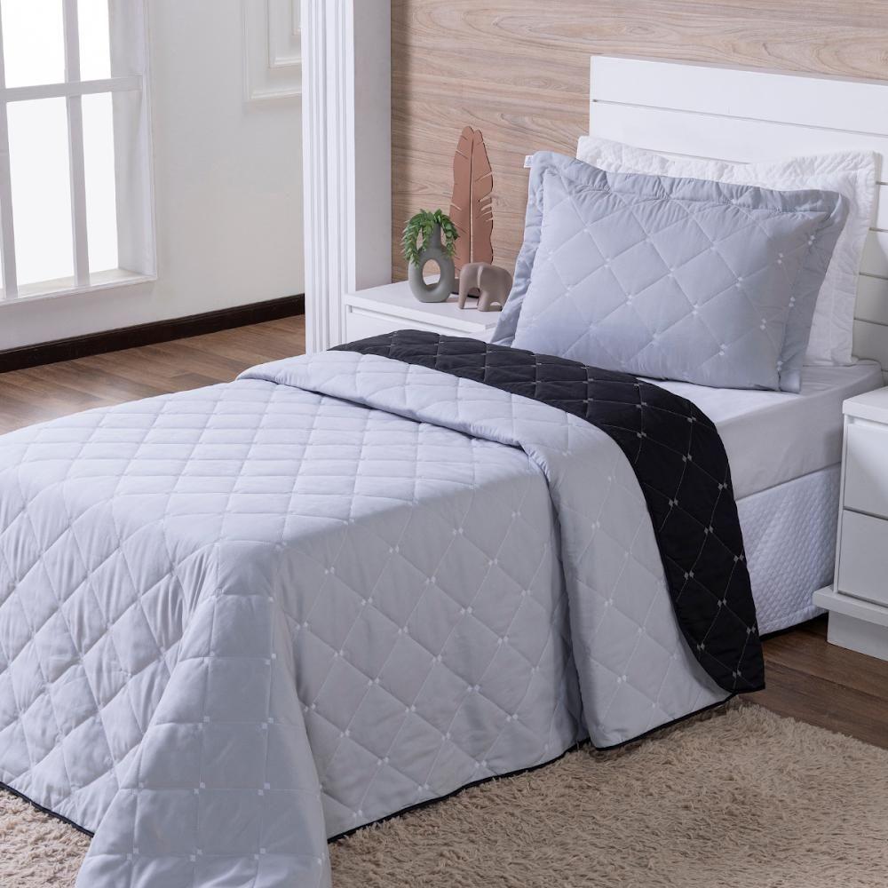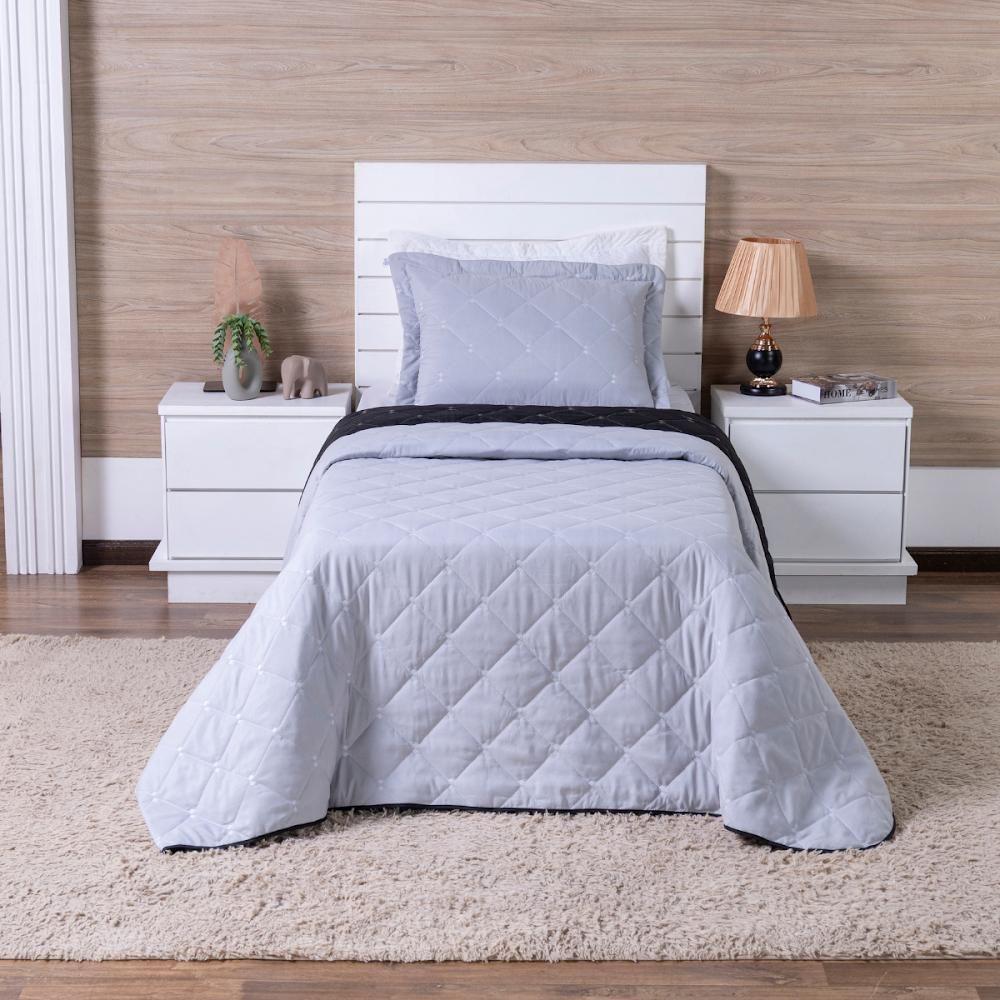 Kit Cobre Leito Dupla Face Solteiro 2 Peças Bordado Essence Hipercal 400 Fios 100% Poliéster - Cinza