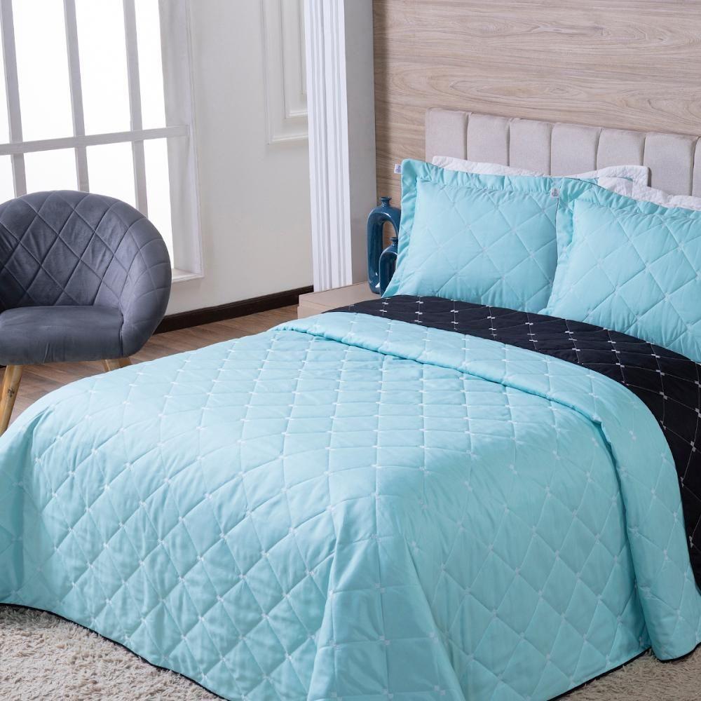 Kit Cobre Leito Dupla Face Casal Padrão 3 Peças Bordado Essence Hipercal 400 Fios 100% Poliéster - Verde Tiffany