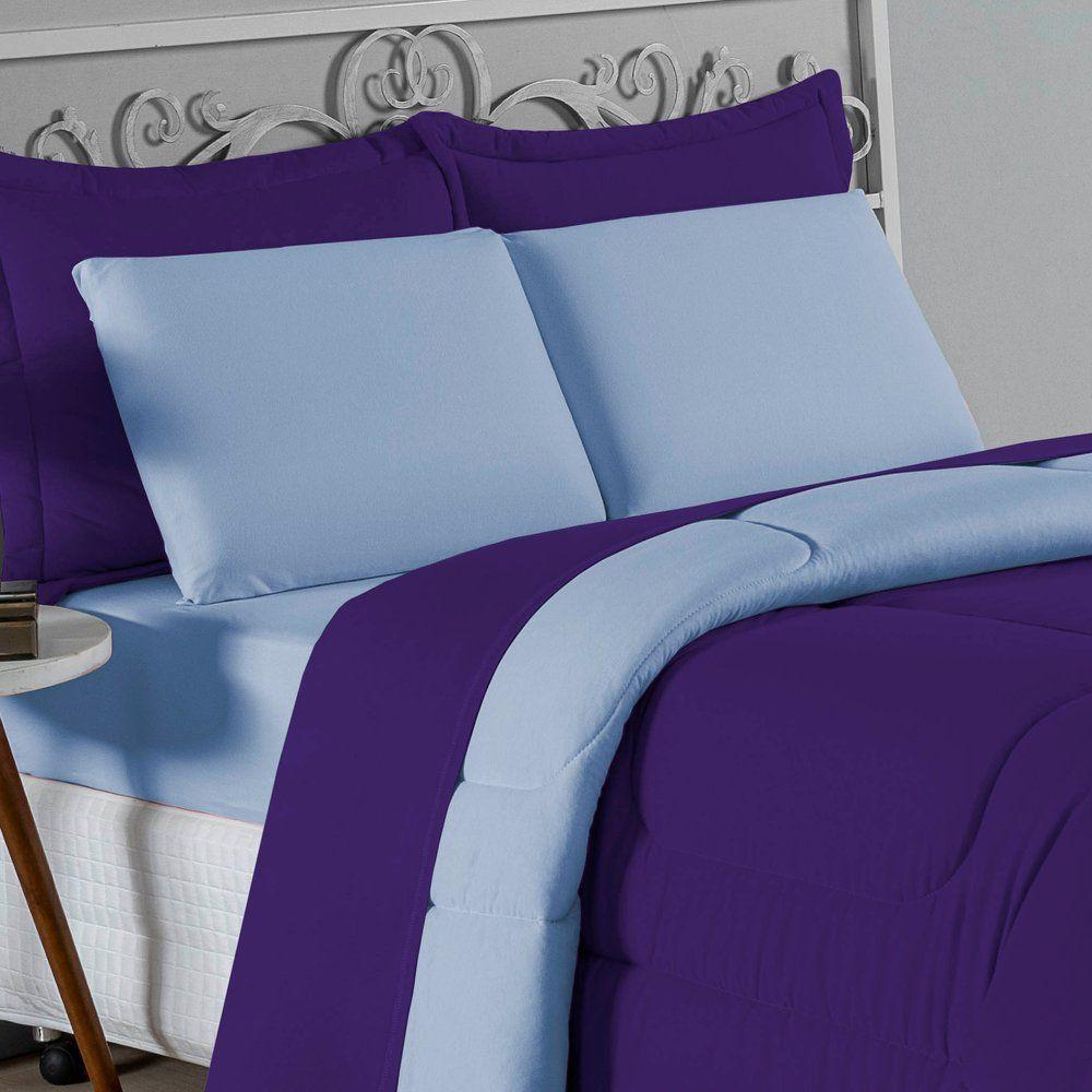 Edredom Casal Nobre 1 Peça Dupla Face 2,00m X 2,20m Malha 100% Algodão - Roxo / Azul-bebêLeve o máximo de conforto para o seu quarto com o Edredom Casal Nobre. A união perfeita entre a elegância do design liso e a maciez incomparável da malha 100% algodão.Por que o Edredom Casal Nobre é uma ótima escolha?- Conforto Natural: Produzido em Malha 100% Algodão com Fio 30/1 Penteado, proporciona um toque extremamente suave e respirável, ideal para todas as estações.- Dupla Face Versátil: Com dois lados lisos e utilizáveis, você ganha praticidade para renovar a decoração da cama sempre que desejar.- Alta Durabilidade: O tratamento de fio penteado remove impurezas e fibras curtas, garantindo um tecido mais resistente, que não forma bolinhas (anti-pilling) e mantém a aparência de novo por muito mais tempo.- Aconchego Garantido: O enchimento em manta siliconada oferece o volume e o isolamento térmico perfeitos para noites de sono reparadoras.Produto composto por (Total 01 Peça):01 Edredom Casal Dupla Face 2,00m x 2,20mComposição:Tecido: Malha 100% Algodão - Fio 30/1 PenteadoEnchimento: 100% Poliéster Siliconada