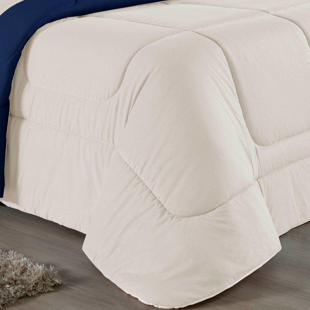 Edredom Casal Nobre 1 Peça Dupla Face 2,00m X 2,20m Malha 100% Algodão - Palha / Azul-marinhoLeve o máximo de conforto para o seu quarto com o Edredom Casal Nobre. A união perfeita entre a elegância do design liso e a maciez incomparável da malha 100% algodão.Por que o Edredom Casal Nobre é uma ótima escolha?- Conforto Natural: Produzido em Malha 100% Algodão com Fio 30/1 Penteado, proporciona um toque extremamente suave e respirável, ideal para todas as estações.- Dupla Face Versátil: Com dois lados lisos e utilizáveis, você ganha praticidade para renovar a decoração da cama sempre que desejar.- Alta Durabilidade: O tratamento de fio penteado remove impurezas e fibras curtas, garantindo um tecido mais resistente, que não forma bolinhas (anti-pilling) e mantém a aparência de novo por muito mais tempo.- Aconchego Garantido: O enchimento em manta siliconada oferece o volume e o isolamento térmico perfeitos para noites de sono reparadoras.Produto composto por (Total 01 Peça):01 Edredom Casal Dupla Face 2,00m x 2,20mComposição:Tecido: Malha 100% Algodão - Fio 30/1 PenteadoEnchimento: 100% Poliéster Siliconada