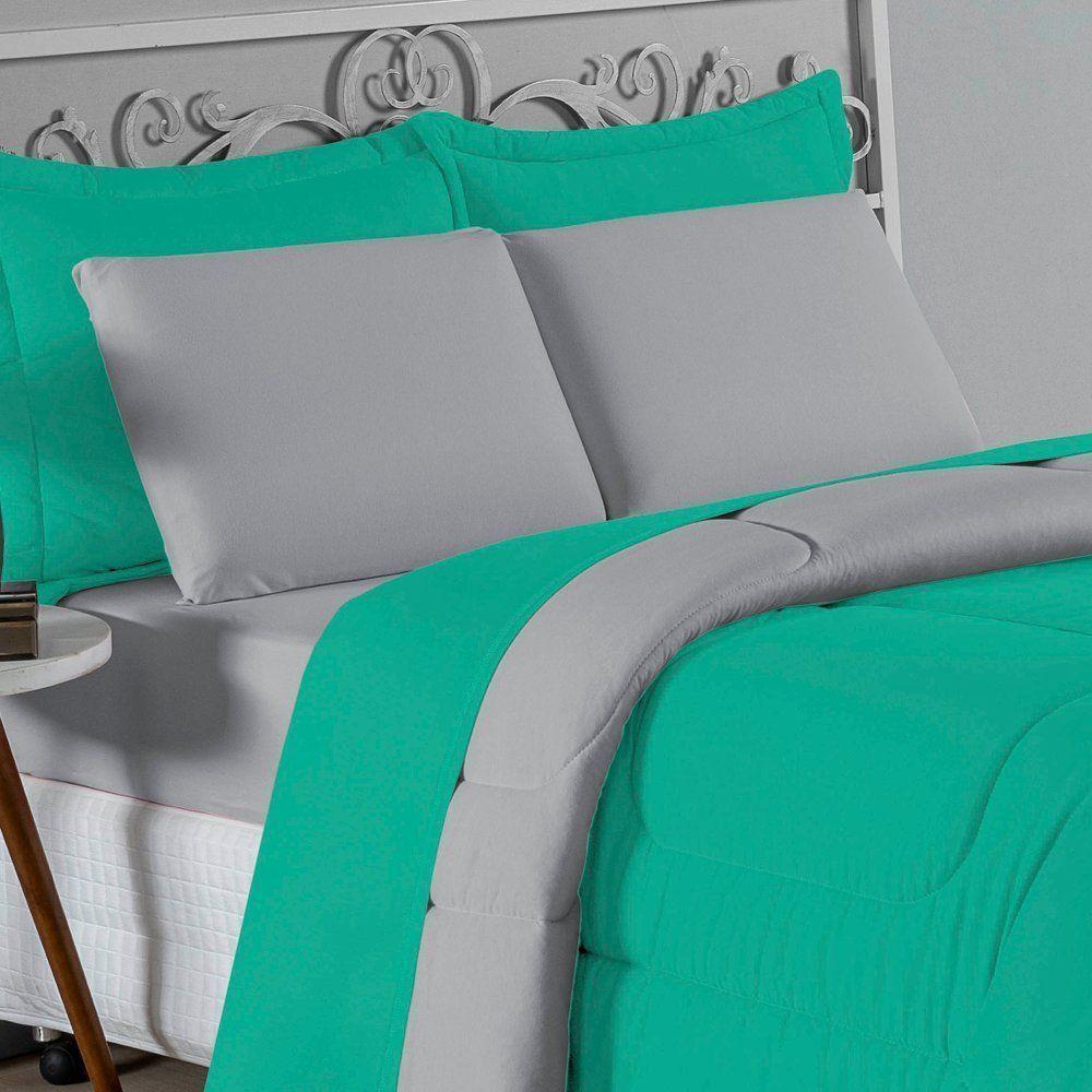 Edredom Queen Nobre 1 Peça Dupla Face 2,20m X 2,40m Malha 100% Algodão - Jade / Cinza