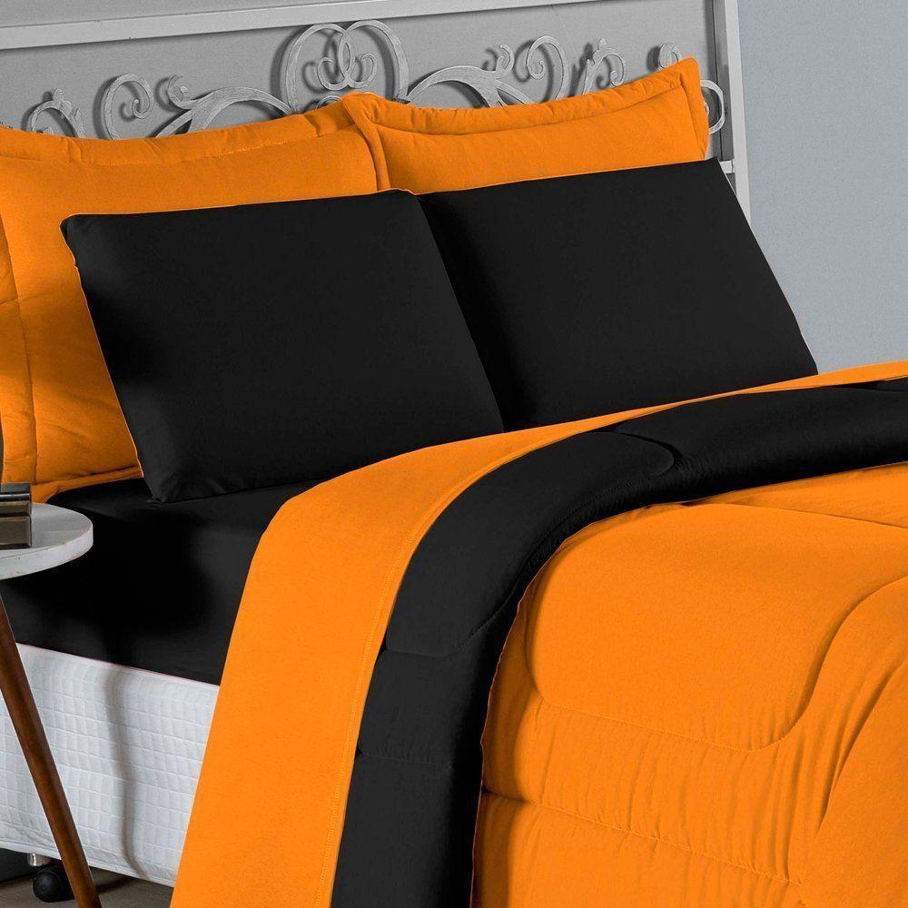 Edredom Queen Nobre 1 Peça Dupla Face 2,20m X 2,40m Malha 100% Algodão - Laranja / Preto