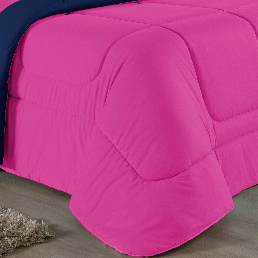Edredom Queen Nobre 1 Peça Dupla Face 2,20m X 2,40m Malha 100% Algodão - Pink / Azul-marinhoGaranta o aconchego que sua cama Queen merece com o Edredom Queen Nobre. Uma peça essencial para quem busca a combinação ideal entre o conforto térmico e a suavidade incomparável do algodão em fio penteado.Por que o Edredom Queen Nobre é uma ótima escolha?- Toque de Malha Premium: Confeccionado em 100% Algodão com Fio 30/1 Penteado, oferece uma sensação de abraço, sendo extremamente macio ao toque.- Design Dupla Face: Com acabamento liso em ambos os lados, permite diversas composições na decoração do quarto, unindo praticidade e estilo.- Qualidade Superior: O processo de fio penteado garante um tecido mais uniforme, resistente e livre de bolinhas, mantendo a beleza da peça por muito mais tempo.- Conforto Térmico Ideal: O enchimento em fibra de poliéster siliconada proporciona o volume certo para aquecer sem pesar, garantindo noites de sono perfeitas.Produto composto por (Total 01 Peça):01 Edredom Queen Dupla Face 2,20m x 2,40mComposição:Tecido: Malha 100% Algodão - Fio 30/1 PenteadoEnchimento: 100% Poliéster Siliconada