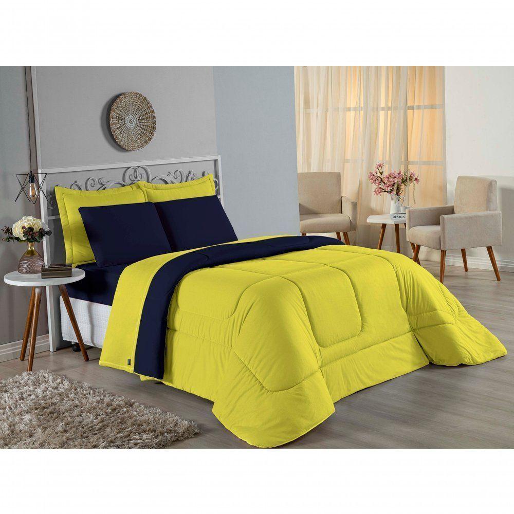 Edredom Queen Nobre 1 Peça Dupla Face 2,40m X 2,60m Malha 100% Algodão - Amarelo / Azul-marinhoExperimente um novo nível de conforto e cobertura com o Edredom Queen Nobre em tamanho ampliado. Com dimensões generosas de 2,40m x 2,60m, ele oferece um caimento impecável para camas Queen, garantindo elegância e noites de sono extremamente aconchegantes.Por que o Edredom Queen Nobre (Tamanho Especial) é a escolha perfeita?- Cobertura Perfeita: Com 2,40m x 2,60m, este edredom é maior que os modelos Queen tradicionais, sendo ideal para camas mais altas ou para quem gosta de um edredom com caimento mais longo nas laterais.- Toque Macio da Malha: Feito em Malha 100% Algodão com Fio 30/1 Penteado, proporciona um contato suave e delicado com a pele, sem aquecer excessivamente.- Qualidade Premium: O fio penteado assegura um tecido mais nobre, resistente à formação de bolinhas e com maior durabilidade, mantendo a aparência de novo por muito tempo.- Praticidade Dupla Face: O design liso em ambos os lados facilita a coordenação com diferentes jogos de cama e estilos de decoração.Produto composto por (Total 01 Peça):01 Edredom Queen Dupla Face 2,40m x 2,60mComposição:Tecido: Malha 100% Algodão - Fio 30/1 PenteadoEnchimento: 100% Poliéster Siliconada