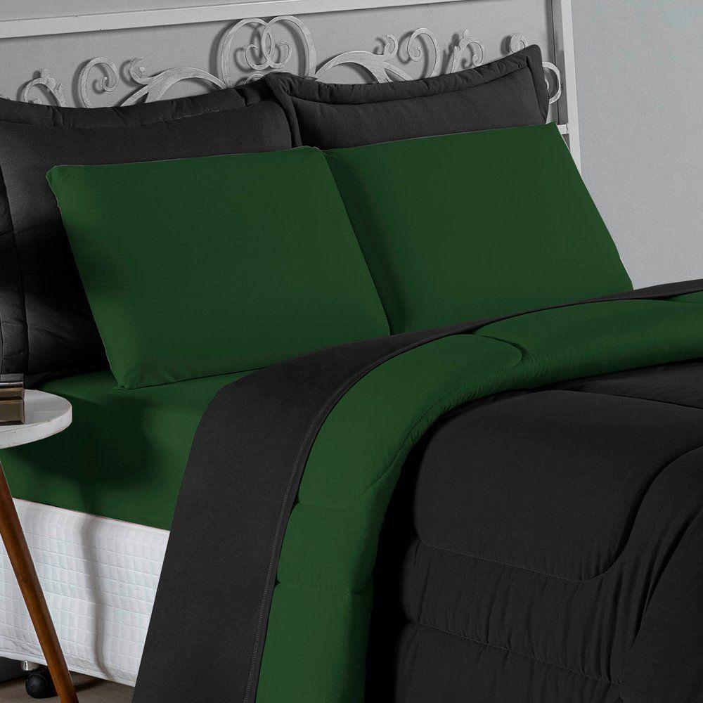 Edredom Queen Nobre 1 Peça Dupla Face 2,40m X 2,60m Malha 100% Algodão - Preto / Verde-bandeira