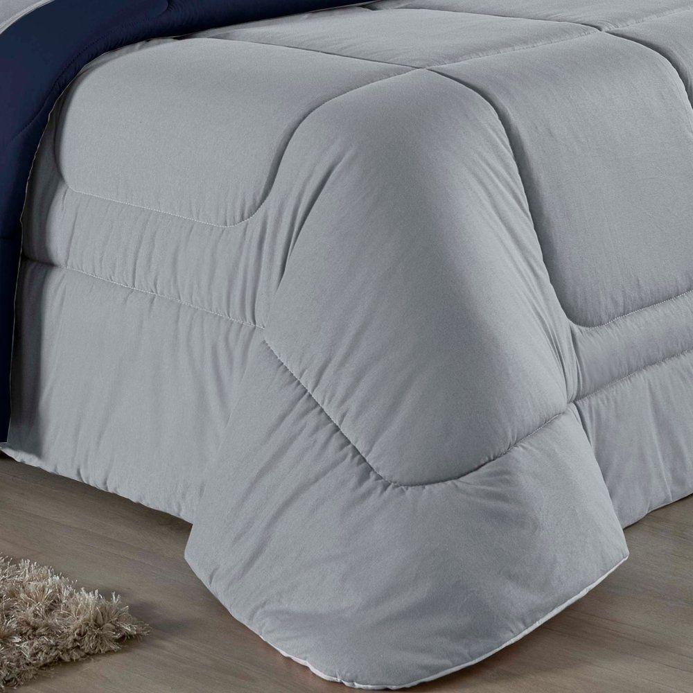 Edredom Queen Nobre 1 Peça Dupla Face 2,20m X 2,40m Malha 100% Algodão - Cinza / Azul-marinhoGaranta o aconchego que sua cama Queen merece com o Edredom Queen Nobre. Uma peça essencial para quem busca a combinação ideal entre o conforto térmico e a suavidade incomparável do algodão em fio penteado.Por que o Edredom Queen Nobre é uma ótima escolha?- Toque de Malha Premium: Confeccionado em 100% Algodão com Fio 30/1 Penteado, oferece uma sensação de abraço, sendo extremamente macio ao toque.- Design Dupla Face: Com acabamento liso em ambos os lados, permite diversas composições na decoração do quarto, unindo praticidade e estilo.- Qualidade Superior: O processo de fio penteado garante um tecido mais uniforme, resistente e livre de bolinhas, mantendo a beleza da peça por muito mais tempo.- Conforto Térmico Ideal: O enchimento em fibra de poliéster siliconada proporciona o volume certo para aquecer sem pesar, garantindo noites de sono perfeitas.Produto composto por (Total 01 Peça):01 Edredom Queen Dupla Face 2,20m x 2,40mComposição:Tecido: Malha 100% Algodão - Fio 30/1 PenteadoEnchimento: 100% Poliéster Siliconada
