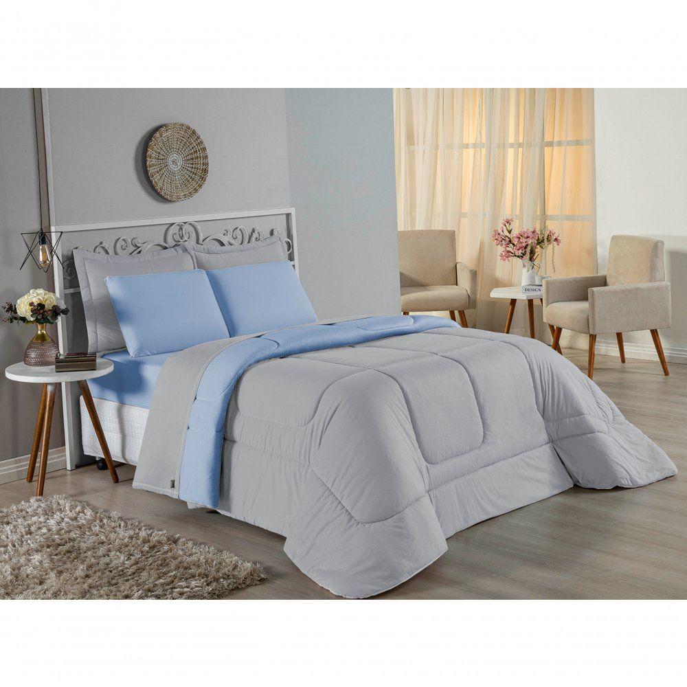 Edredom Queen Nobre 1 Peça Dupla Face 2,20m X 2,40m Malha 100% Algodão - Cinza / Azul-bebêGaranta o aconchego que sua cama Queen merece com o Edredom Queen Nobre. Uma peça essencial para quem busca a combinação ideal entre o conforto térmico e a suavidade incomparável do algodão em fio penteado.Por que o Edredom Queen Nobre é uma ótima escolha?- Toque de Malha Premium: Confeccionado em 100% Algodão com Fio 30/1 Penteado, oferece uma sensação de abraço, sendo extremamente macio ao toque.- Design Dupla Face: Com acabamento liso em ambos os lados, permite diversas composições na decoração do quarto, unindo praticidade e estilo.- Qualidade Superior: O processo de fio penteado garante um tecido mais uniforme, resistente e livre de bolinhas, mantendo a beleza da peça por muito mais tempo.- Conforto Térmico Ideal: O enchimento em fibra de poliéster siliconada proporciona o volume certo para aquecer sem pesar, garantindo noites de sono perfeitas.Produto composto por (Total 01 Peça):01 Edredom Queen Dupla Face 2,20m x 2,40mComposição:Tecido: Malha 100% Algodão - Fio 30/1 PenteadoEnchimento: 100% Poliéster Siliconada
