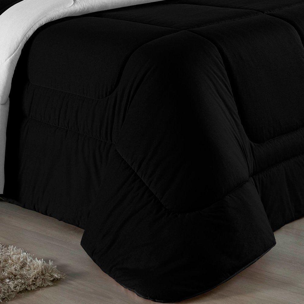 Edredom Queen Nobre 1 Peça Dupla Face 2,20m X 2,40m Malha 100% Algodão - Preto / Branco