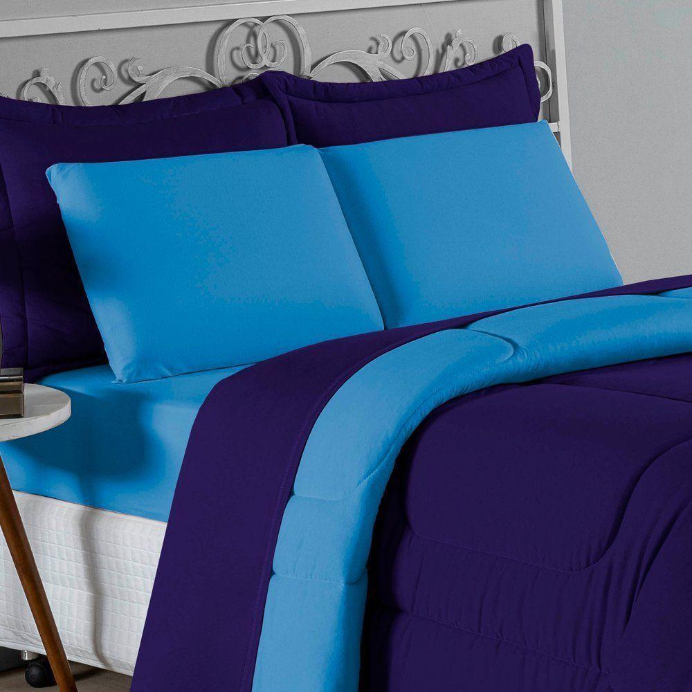 Edredom Queen Nobre 1 Peça Dupla Face 2,20m X 2,40m Malha 100% Algodão - Roxo / TurquesaGaranta o aconchego que sua cama Queen merece com o Edredom Queen Nobre. Uma peça essencial para quem busca a combinação ideal entre o conforto térmico e a suavidade incomparável do algodão em fio penteado.Por que o Edredom Queen Nobre é uma ótima escolha?- Toque de Malha Premium: Confeccionado em 100% Algodão com Fio 30/1 Penteado, oferece uma sensação de abraço, sendo extremamente macio ao toque.- Design Dupla Face: Com acabamento liso em ambos os lados, permite diversas composições na decoração do quarto, unindo praticidade e estilo.- Qualidade Superior: O processo de fio penteado garante um tecido mais uniforme, resistente e livre de bolinhas, mantendo a beleza da peça por muito mais tempo.- Conforto Térmico Ideal: O enchimento em fibra de poliéster siliconada proporciona o volume certo para aquecer sem pesar, garantindo noites de sono perfeitas.Produto composto por (Total 01 Peça):01 Edredom Queen Dupla Face 2,20m x 2,40mComposição:Tecido: Malha 100% Algodão - Fio 30/1 PenteadoEnchimento: 100% Poliéster Siliconada