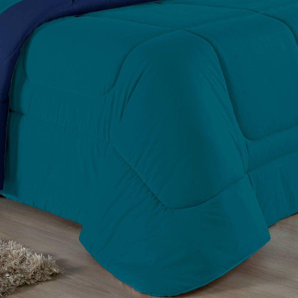 Edredom Queen Nobre 1 Peça Dupla Face 2,40m X 2,60m Malha 100% Algodão - Petróleo / Azul-marinho