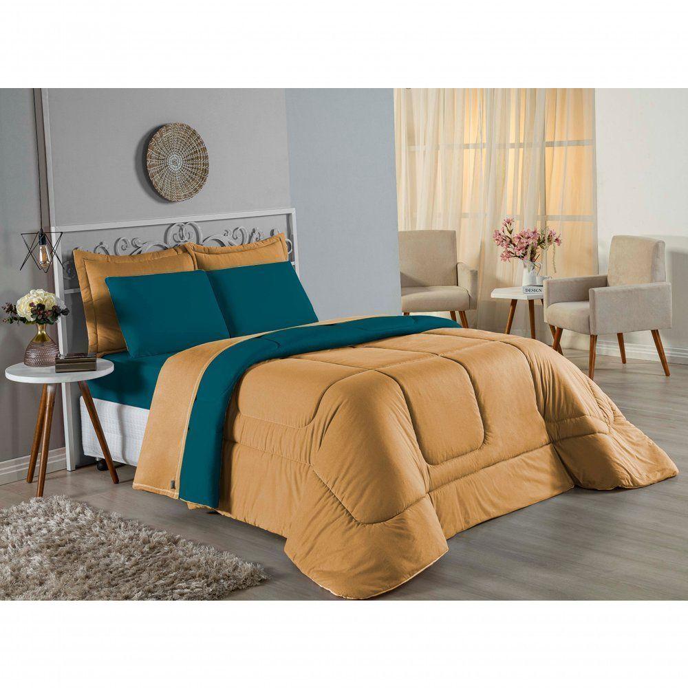 Kit Edredom Dupla Face + Jogo De Lençol Casal Viúva Nobre 7 Peças Malha 100% Algodão - Cobre / PetróleoGaranta a experiência completa de conforto e decoração com o Kit Cama Completa Casal Viúva Nobre 7 Peças. Este conjunto premium inclui todas as peças necessárias para vestir a cama, do lençol de cima ao edredom, tudo em malha 100% algodão. Essa medida especial foi feita para as camas cama casal viúva ou solteiro viúva.Por que este Kit é uma ótima escolha?- Enxoval Completo: Diferente dos kits básicos, este modelo inclui o Lençol de Cima, ideal para dias frescos e para proteger o edredom, garantindo higiene e conforto térmico.- Qualidade da Malha: Feito em 100% Algodão Fio 30/1 Penteado, oferece toque macio, não dá bolinhas e é altamente respirável.- Decoração Impecável: O edredom dupla face e o porta travesseiro matelado decoram a cama, enquanto o jogo de lençóis completo traz a sensação de cama de hotel.- Ajuste Seguro: O lençol de baixo com elástico fixa-se firmemente ao colchão Casal viúva.Produto composto por (Total 07 Peças):Do Kit Edredom (03 Peças):01 Edredom Casal Viúva Dupla Face: 2,00m x 2,20m02 Porta Travesseiro Matelado: 50cm x 70cmDo Jogo de Lençol (04 Peças):01 Lençol de Cima (Virol) Casal 2,40m x 2,20m01 Lençol Casal Viúva com Elástico 1,28m x 1,98m x 30cm02 Fronha: 70cm x 50cmComposição:Tecido (Todas as peças): Malha 100% Algodão - Fio 30/1 PenteadoEnchimento (Edredom e Porta Travesseiro): 100% Poliéster (Edredom com fibra siliconada)Forro (Apenas Porta Travesseiro): 100% Polipropileno