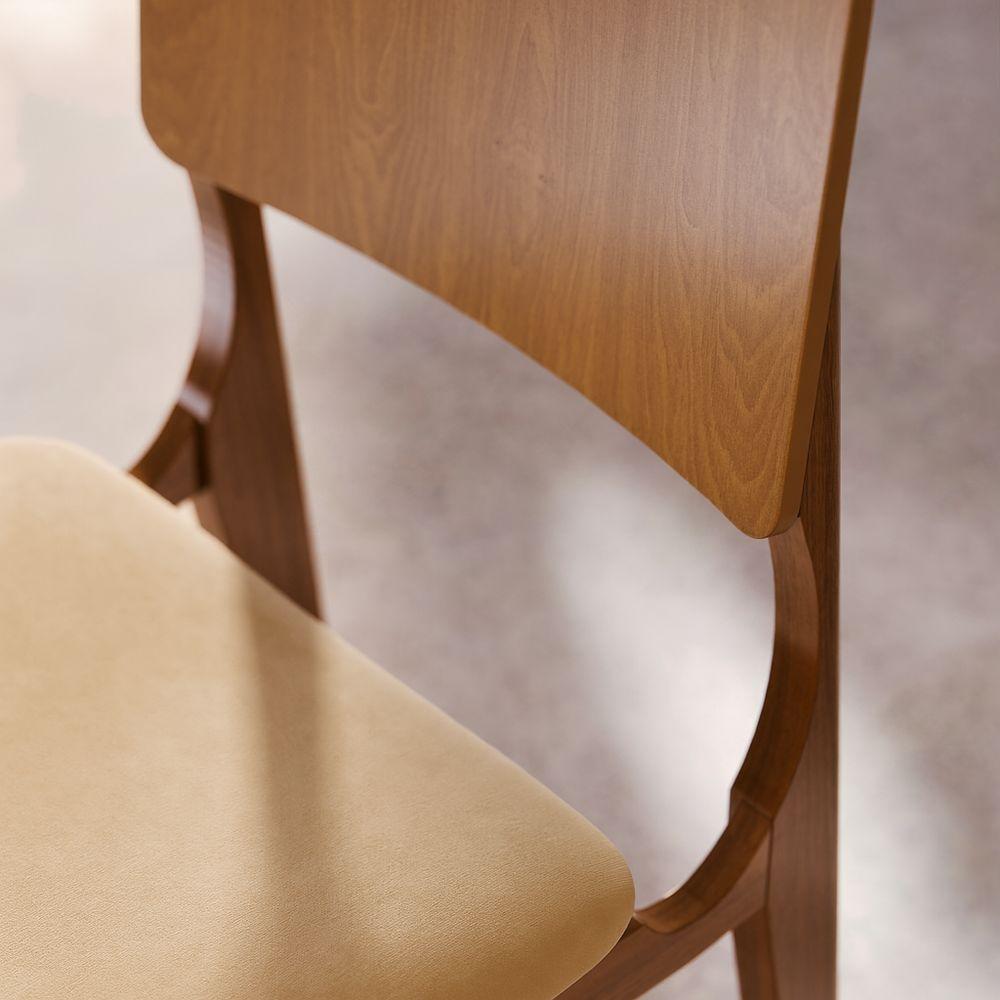 Kit Com 8 Cadeiras Turmalina Encosto Laminado Madeira Maciça Mel Veludo BegeKit com 8 Cadeiras Turmalina – Sofisticação com Conforto DuradouroO ;Kit com 8 Cadeiras Turmalina ;é a união perfeita entre ;elegância, resistência e conforto, pensado para transformar ambientes como salas de jantar, espaços gourmet, consultórios ou recepções com estilo e funcionalidade.A estrutura em ;madeira eucalipto maciça ;garante firmeza e durabilidade, ideal para uso contínuo e ambientes com alto fluxo. O assento é estofado com ;espuma D26, que oferece excelente densidade para conforto prolongado, e revestido com ;veludo bege, um tecido nobre, de toque macio e visual sofisticado.O ;encosto laminado ;traz uma estética clean e contemporânea, que se adapta bem a diversos estilos de decoração — do moderno ao clássico.;Benefícios do ProdutoMadeira Eucalipto Maciça – Estrutura robusta e confiávelAlta durabilidade e resistência ao uso diário. Madeira tratada e seca em estufa, que não empena nem deforma com facilidade.Assento com Espuma D26 – Conforto realIdeal para longos períodos sentado. Densidade firme, que mantém o formato com o passar do tempo.Revestimento em Veludo Bege – Toque macio e visual sofisticadoTecido com brilho suave e elegante, fácil de combinar com diversos estilos de ambiente. Confortável ao toque e agradável em todas as estações do ano.Encosto Laminado – Estilo e ergonomiaDesign curvo e anatômico que oferece apoio eficiente às costas, sem perder a leveza estética.Kit com 8 unidades – Ideal para grandes ambientesPerfeito para quem precisa padronizar espaços amplos com qualidade e bom gosto.Quebra de Possíveis Objeções“Veludo é difícil de limpar?”O veludo utilizado é de ;alta qualidade e manutenção simples. Um pano levemente umedecido já é suficiente para limpeza cotidiana.“O encosto é desconfortável por ser liso?”Apesar de não estofado, o encosto tem ;curvatura ergonômica, proporcionando apoio confortável para as costas.“Madeira maciça não empena com o tempo?”A madeira eucalipto usada é ;tratada e estabilizada, ideal para uso interno sem risco de empenamento.;Ficha Técnica do ProdutoProduto: ;Kit com 8 Cadeiras TurmalinaModelo: ;TurmalinaEstrutura: ;Madeira Eucalipto MaciçaAssento: ;Espuma D26Revestimento: ;VeludoCor do Revestimento: ;BegeEncosto: ;Laminado em madeiraAcabamento da Madeira: ;Verniz BrilhoQuantidade no kit: ;8 unidadesIndicação de uso: ;Ambientes internos – sala de jantar, espaço gourmet, restaurantes, clínicas, escritóriosMedidas de Cada CadeiraAltura: ;92 cmProfundidade: ;56 cmLargura: ;46 cm