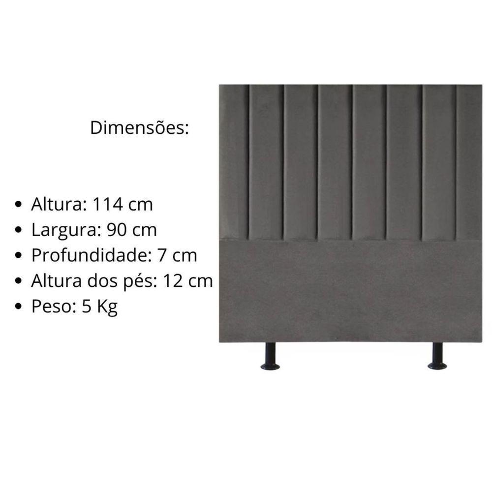 Cabeceira Estofada Cama Solteiro 90 Cm Sophia Carla Suede cinza Escuro