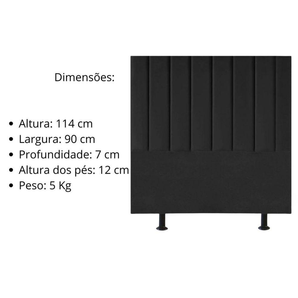 Cabeceira Estofada Cama Solteiro 90 Cm Sophia Carla Suede Preto