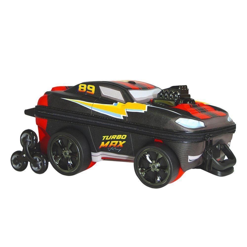 Mala Infantil 3+ Escolar Menino Turbo Max 3d Com Rodinhas Tripla Cor Preta