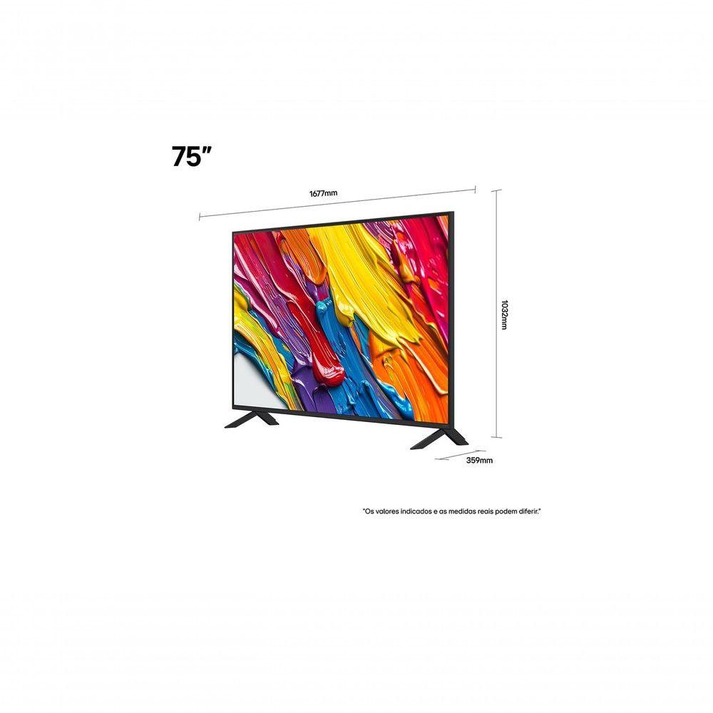 Smart LG QNED AI QNED82 75 Polegadas (75QNED82ASG): A Nova Era Do Entretenimento 4K Principais Recursos:Paleta de cores incrivelmente rica com a nova tecnologia Dynamic QNED Color.Qualidade de imagem 4K aprimorada e áudio surround do Processador Alpha 7 AI Gen8.Controle intuitivo com o AI Magic Remote: botão AI, comandos de voz e funções de arrastar e soltar.Regulagem precisa de luminosidade (MiniLED) para uma imagem mais nítida e detalhes sutis.Alta resolução em uma enorme tela de ultragrande.webOS Programa Re:New: Novas atualizações por 5 anos e premiada.Especificações Técnicas:Tipo de Painel: 4K QNEDResolução: 4K Ultra HD ( x Iluminação do painel: EdgeFrequência Nativa: 60Hz NativoAmpla de Cores: Cores Dinâmicas QNEDProcessador: α7 AI Processor 4K Gen8Upscaler AI: 4K Super UpscalingDynamic Tone Mapping: SimAI Brightness Control: SimHDR (High Dynamic Range): HDR10 / HLGFilmmaker Mode: SimDimming Technology: DimmingModo de Imagem: 10 modosAuto Calibração: Sim de de Áudio: eARC (HDMI 2)Bluetooth Support: Sim (Ethernet: 1eaSimplink (HDMI CEC): SimSPDIF (Saída de Áudio Digital Óptica): 1eaEntrada HDMI: 3 (suporta eARC, ALLM)Entrada de RF (Antena/Cabo): 1eaUSB: 1ea (v Wi-Fi: (Wi-Fi 5)Sistema Operacional: webOS 25 com Câmera USB: SimWeb Browser Completo: SimReconhecimento Inteligente de Voz: SimLG Channels: SimControle Smart Magic: Built-In (Integrado)App de Controle pelo : Sim (LG ThinQ) com Home: SimVoltagem: AC 100~240V 50-60HzConsumo de energia em stand by: Abaixo de 0,5WControle Remoto: Smart Magic MR25Cabo de Força: Sim (Destacável)Dimensões sem base (LxAxP): 1677 x 966 x 51,6Dimensões com base (LxAxP): 1677 x 1032 x 359Dimensões da embalagem (LxAxP): 1820 x 1115 x 187Base da (LxAxP): 1499 x 359Peso sem base: 31,4Peso com base: 32,4Peso da embalagem: 40,7Suporte Vesa (LxA): 300 x 200Código de Barras: 8806096354773Perguntas Frequentes: Vocês faturam para B2B/CNPJ?Os produtos são vendidos para o consumidor final (CPF/B2C). Não realizamos vendas para Empresas (CNPJ/B2B).Existe uma limitação para quantidade de produtos comprados?Considerando que a venda é realizada para pessoas físicas (CPF/B2C), com o intuito de uso e consumo, o limite de compra é de até 10 (dez) produtos.Os produtos são ?Sim, nós somos a oficial da LG no . Todos os produtos são e com .Vocês enviam ?Sim, todos os produtos são enviados com a .É possível trocar?Não trabalhamos com o processo de troca do produto, mas é possível a mercadoria, receber o e comprar novamente o produto desejado, desde que respeitadas as regras e prazos previstos no Código de Defesa do Consumidor.Os produtos tem garantia?Sim, todos os produtos têm garantia da oficial da LG no .Qual o valor do ?O valor do é calculado automaticamente pelo de venda. Basta inserir o CEP de no campo abaixo do valor do produto. Se não aparecer valor, o estará sem custo no período aproveite!A Web Continental trabalha como um Agente de Vendas da LG. A e o do produto serão feitos pela LG.