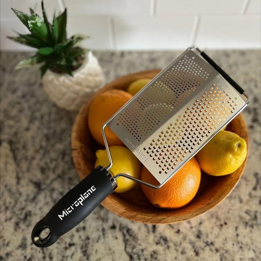 Ralador Duplo Fino E Grosso Gourmet Series Microplane PretoOs raladores Microplane unem alta performance e design ergonômico. Com lâminas ultra afiadas de aço inox fabricadas nos EUA, oferecem cortes precisos para raspas delicadas ou mais grossas, ideais para frutas, queijos, legumes e especiarias.Seu cabo confortável e base antiderrapante garantem uso estável e seguro. Além disso, vêm com tampa protetora reutilizável e podem ser lavados na lava-louças, facilitando a limpeza. Perfeitos para chefs e amantes da culinária, trazem qualidade e praticidade para o dia a dia na cozinha.Especificações do produto: - Lâmina dupla: fina para raspas delicadas e grossa para ingredientes volumosos- Ideal para queijos, especiarias, vegetais e frutas- Cabo ergonômico para maior conforto durante o uso- Inclui tampa protetora para armazenamento seguro- Pode ir na lava-louçasFicha técnica: - Código: 4082740097- Marca: Microplane- Modelo: Gourmet Series- Conteúdo da Embalagem: 1 Ralador- Material: Aço Inox- Peso: 0,210kg- Dimensões do produto: 3cm x 11,5cm x 33,3cm (AxLxP)- Garantia: 3 Meses (Contra defeito de fabricação)Altura - 3cmLargura - 11,5cmProfundidade - 33,3cmPeso - 0,210kgSobre a Marca - A americana Microplane é uma marca mundialmente reconhecida por seus raladores de alta qualidade e precisão. Seus produtos são conhecidos por sua durabilidade, design ergonômico e lâminas afiadas que permitem ralar facilmente uma variedade de alimentos, como queijo, frutas, legumes e chocolate. A marca Microplane oferece uma ampla gama de raladores, desde os clássicos de mão até os modelos mais especializados, tornando-se uma escolha popular entre chefs e amantes da culinária.