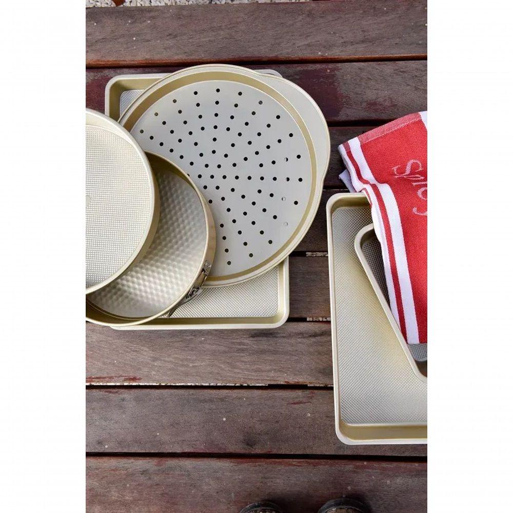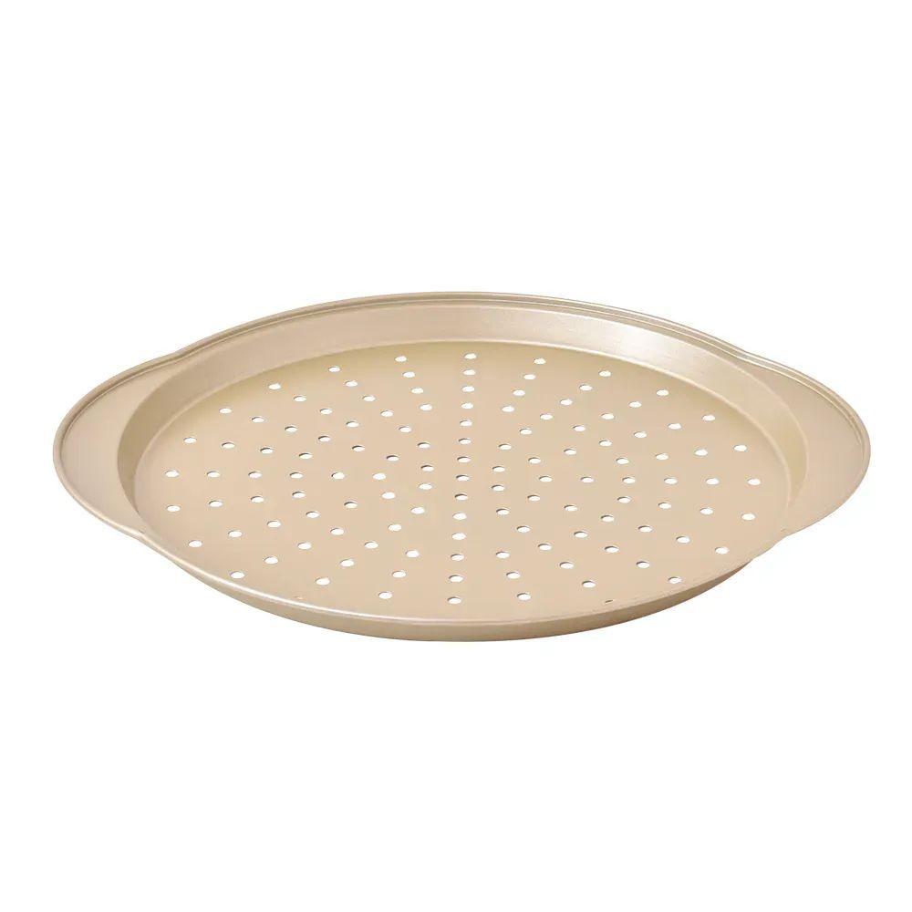 Forma De Pizza Redonda Aço Carbono Kenya Dourada 37cm