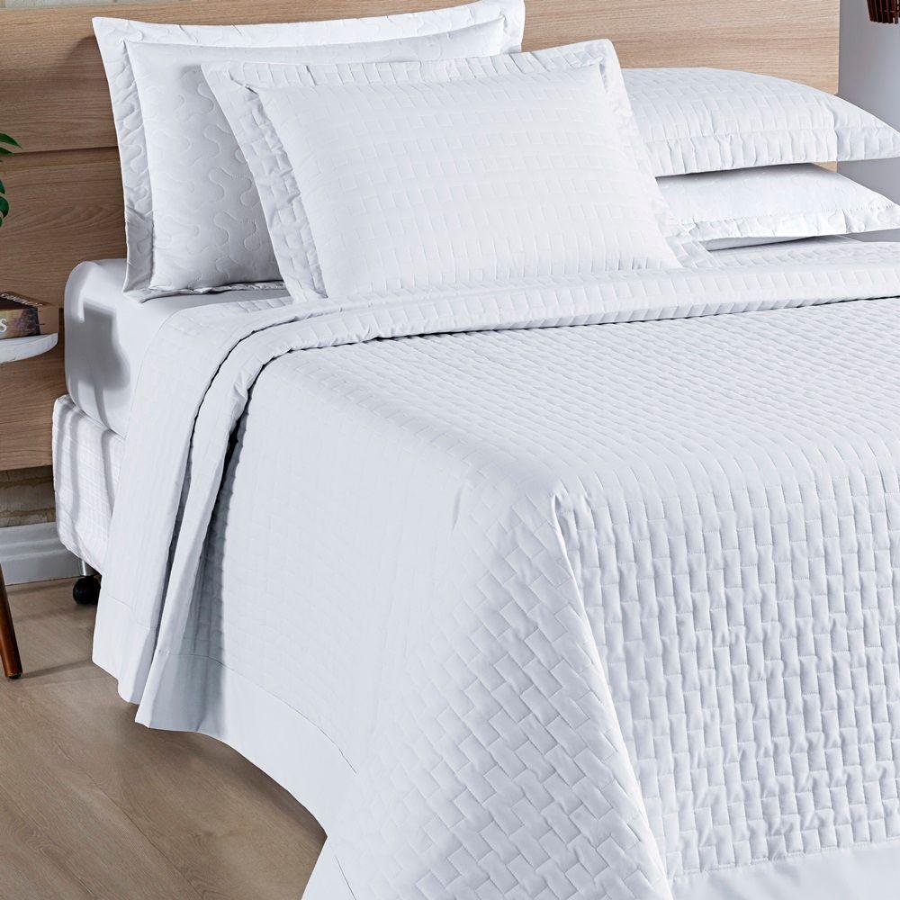Cobre Leito Madri Percal 200 Fios 100% Algodão Casal Padrão 03 Peças - BrancoO Cobre Leito Madri é confeccionado com tecido percal 200 fios 100% Algodão e possui detalhes no barrado, acompanha porta travesseiros. Produto composto por: 01 Cobre leito 2,40m x 2,20m02 Porta travesseiros 80cm x 55cm (Medida útil: 70cm x 50cm) Composição: Tecido Superior e Inferior: Percal 200 Fios 100% AlgodãoEnchimento: 100% Poliéster