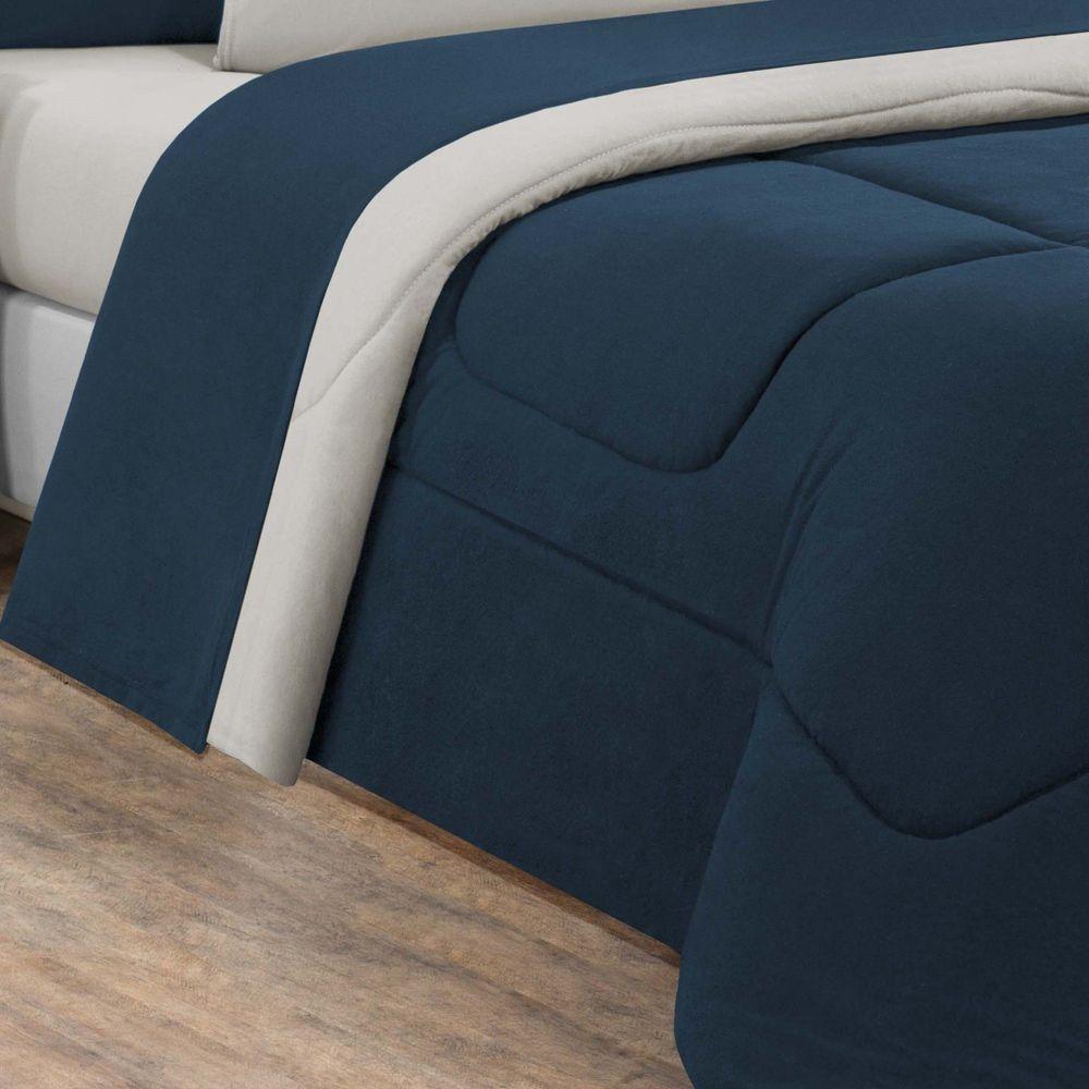 Kit Edredom + Jogo De Lençol Malha 100% Algodão Gran Moratta 7 Peças Queen - Azul Marinho-palha