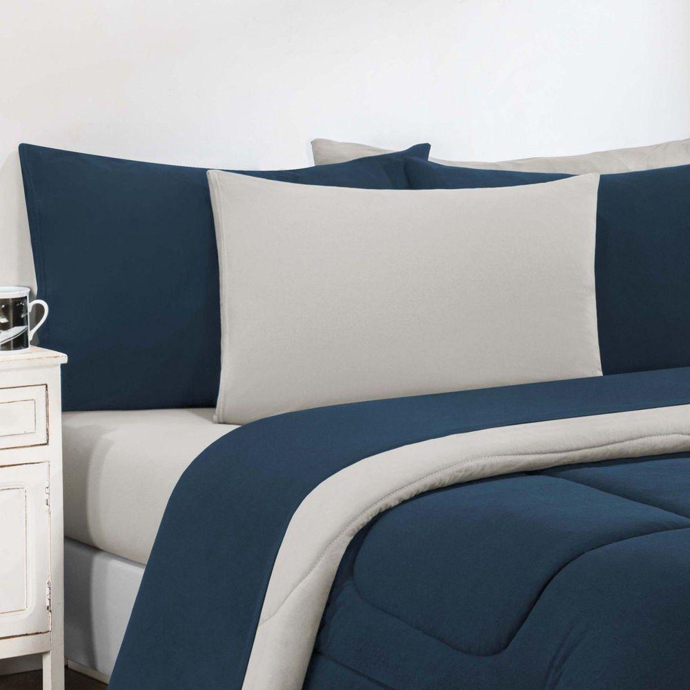Kit Edredom + Jogo De Lençol Malha 100% Algodão Gran Moratta 7 Peças Queen - Azul Marinho/palhaO Kit Edredom Gran Moratta possui tecido Malha 100% algodão, toque macio.O jogo de cama possui o toque suave do algodão, acompanha lençol de baixo, lençol de cima e fronhas.A combinação perfeita para suas noites de sono!Produto composto por:01 Edredom Queen Dupla Face Liso 2,20m x 2,40m02 Porta Travesseiros 70cm x 50cm01 Lençol de Cima 2,50m x 2,40m01 Lençol Casal de Baixo para colchão 1,58x1,98x0,30 (Elástico na volta toda)02 Fronhas 70cm x 50cmComposição:Malha 100% Algodão Fio 30/1 (130 Gramas)Enchimento 100% Poliéster (120 Gramas)Lençol e FronhasComposição:Malha 100% Algodão Fio 30/1 (130 Gramas)