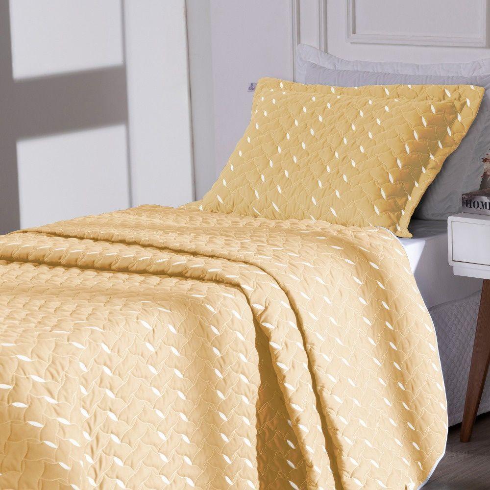 Cobre Leito Bordado 400 Fios Heitor Solteiro 100% Poliéster - Amarelo
