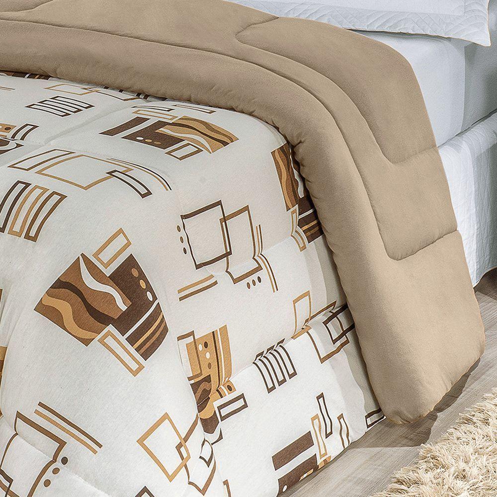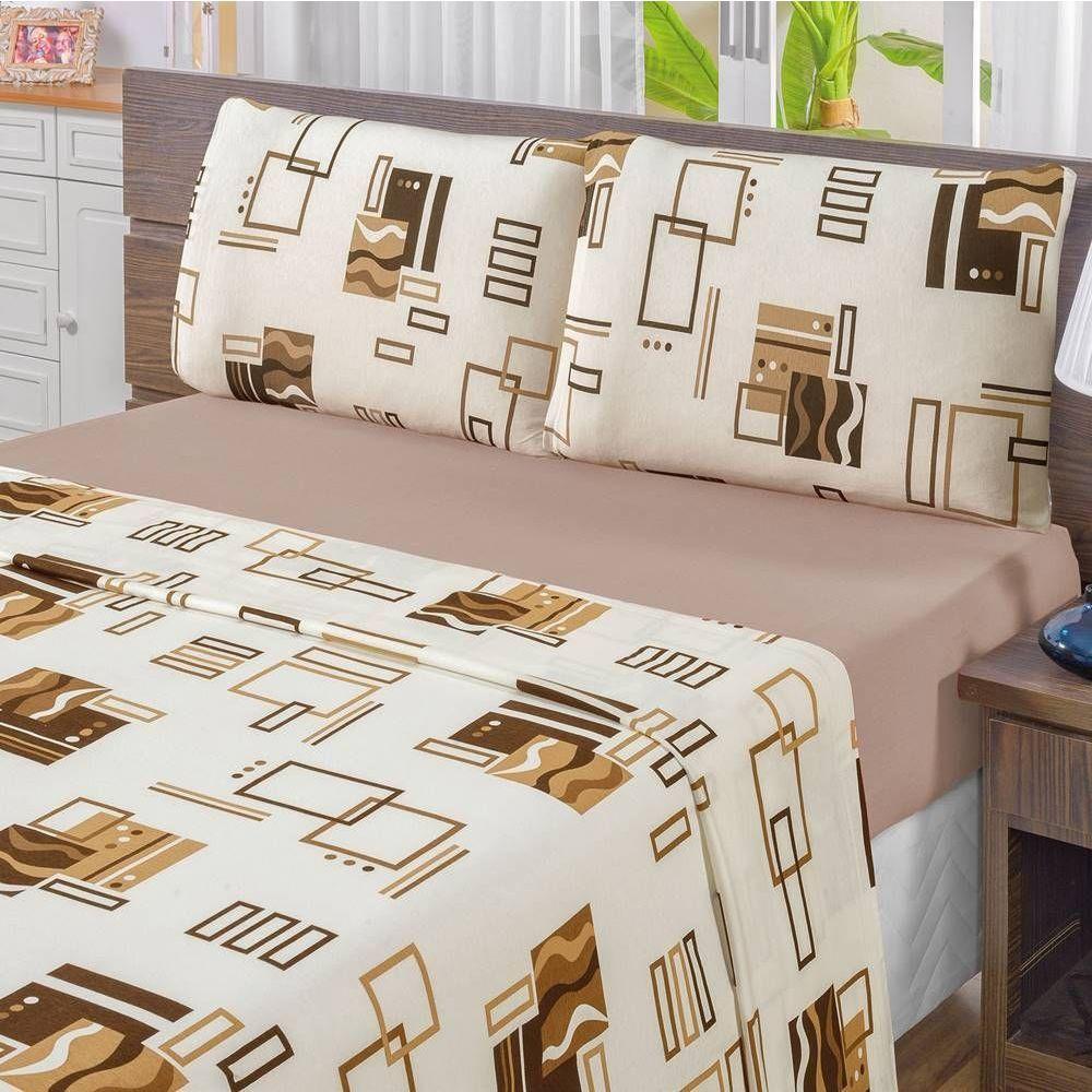 Edredom 2,60m X 2,40m + Jogo De Cama Malha Quality King 05 Peças 100% Algodão - Avelã