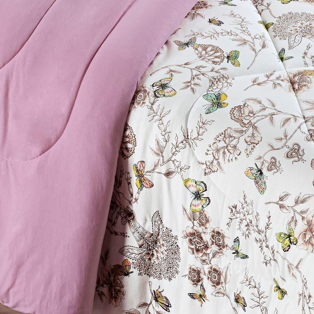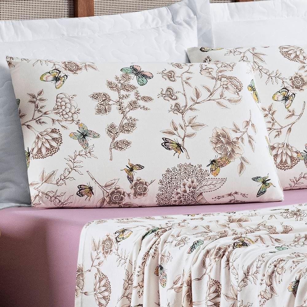 Edredom 2,60m X 2,40m + Jogo De Cama Malha Quality King 05 Peças 100% Algodão - Butterfly