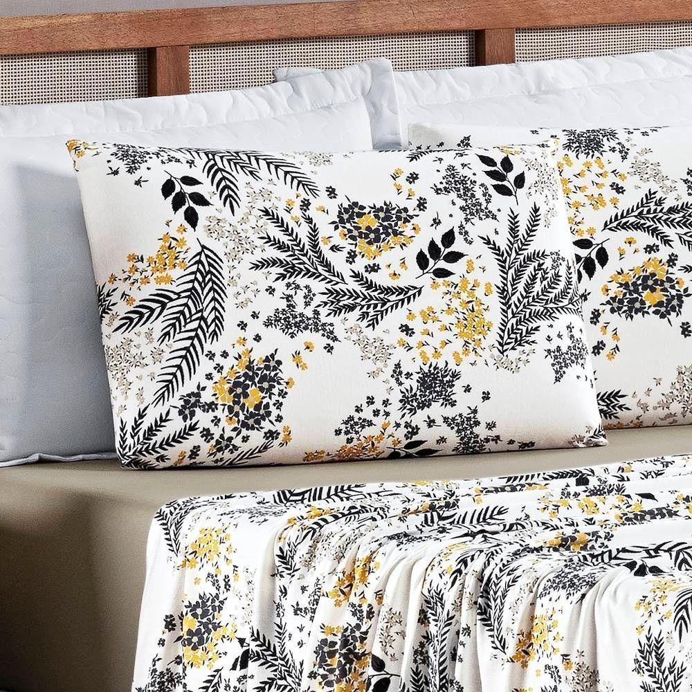 Edredom 2,60m X 2,40m + Jogo De Cama Malha Quality King 05 Peças 100% Algodão - Blossom