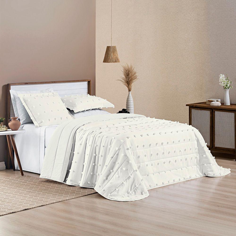 Cobre Leito Queen Poppy Micropercal 300 Fios Pompom 03 Peças 100% Poliéster - Off White