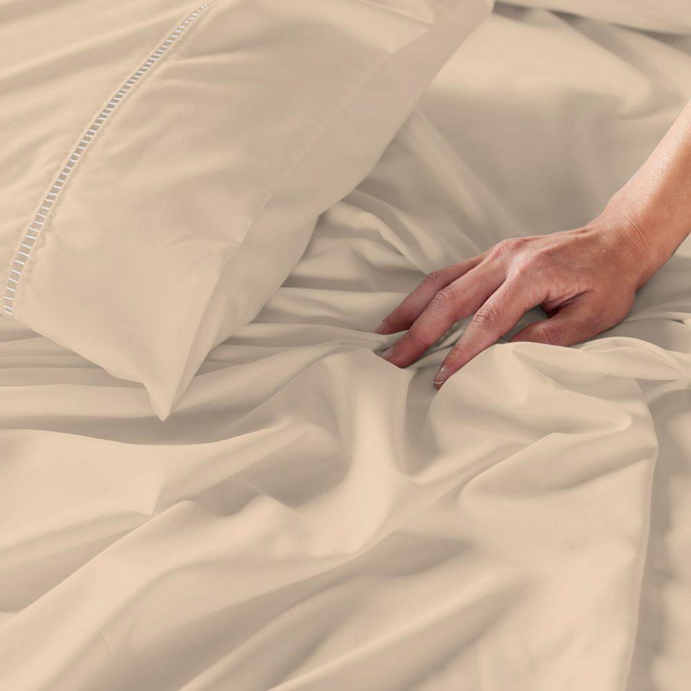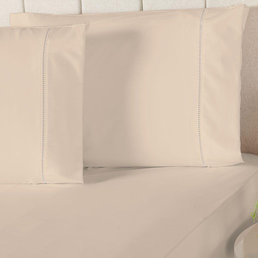 Jogo De Lençol Casal Padrão 3 Peças Laura 400 Fios 100% Poliéster - Cáqui
