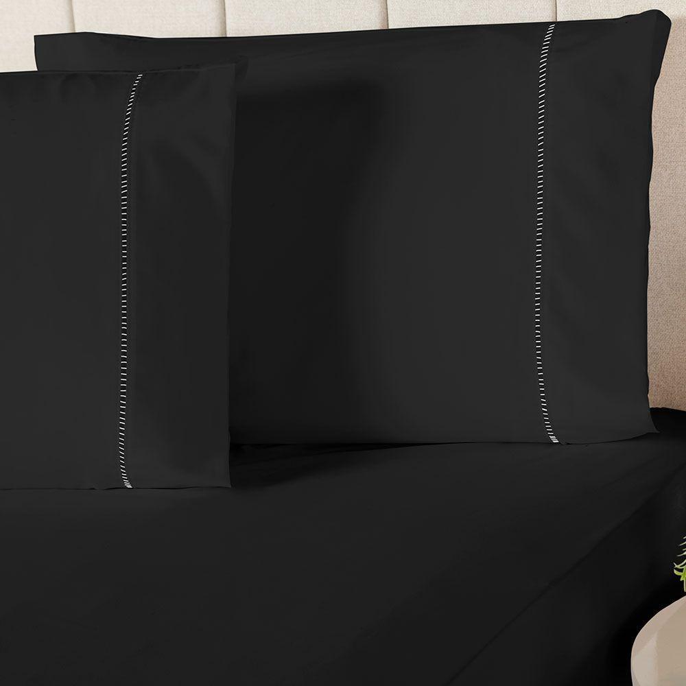 Jogo De Lençol Solteiro 2 Peças Laura 400 Fios 100% Poliéster - Preto