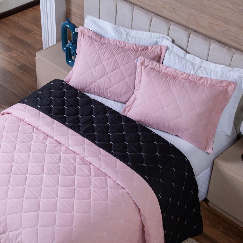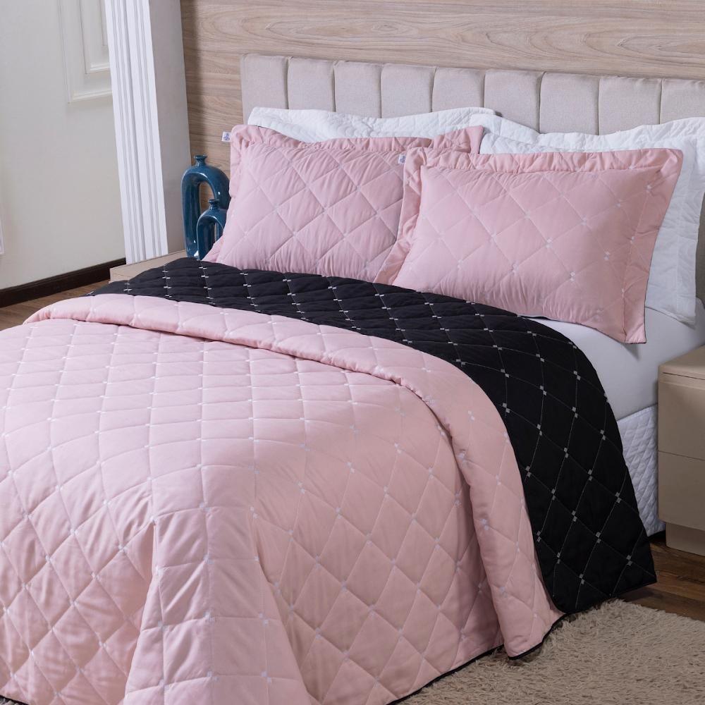 Kit Cobre Leito Dupla Face Casal Padrão 3 Peças Bordado Essence Hipercal 400 Fios 100% Poliéster - Rosê