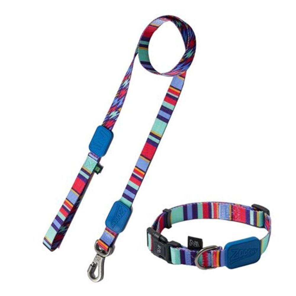 Coleira Ajustável E Guia Para Cães Raios E Listras Azul - M