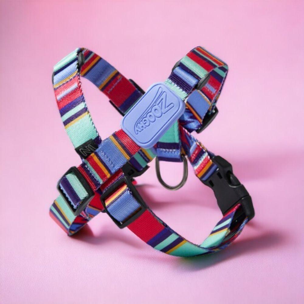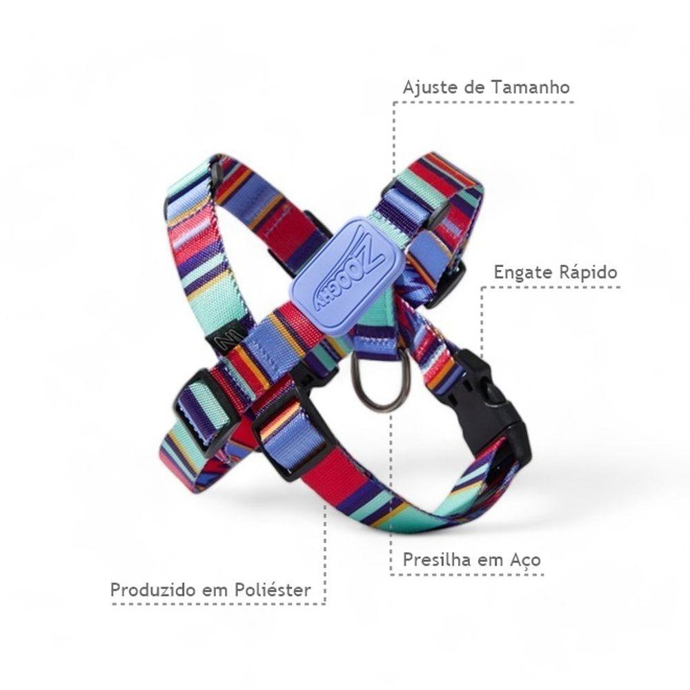 Peitoral Em X E Guia Para Cães Raios E Listras Violeta - M