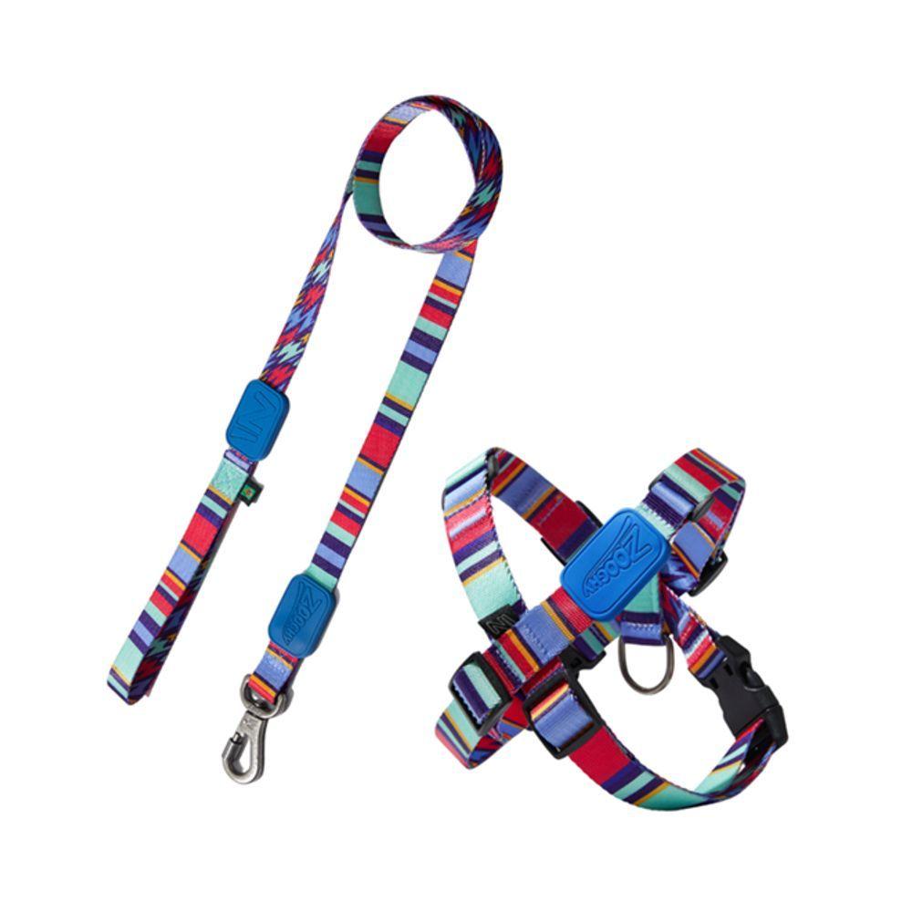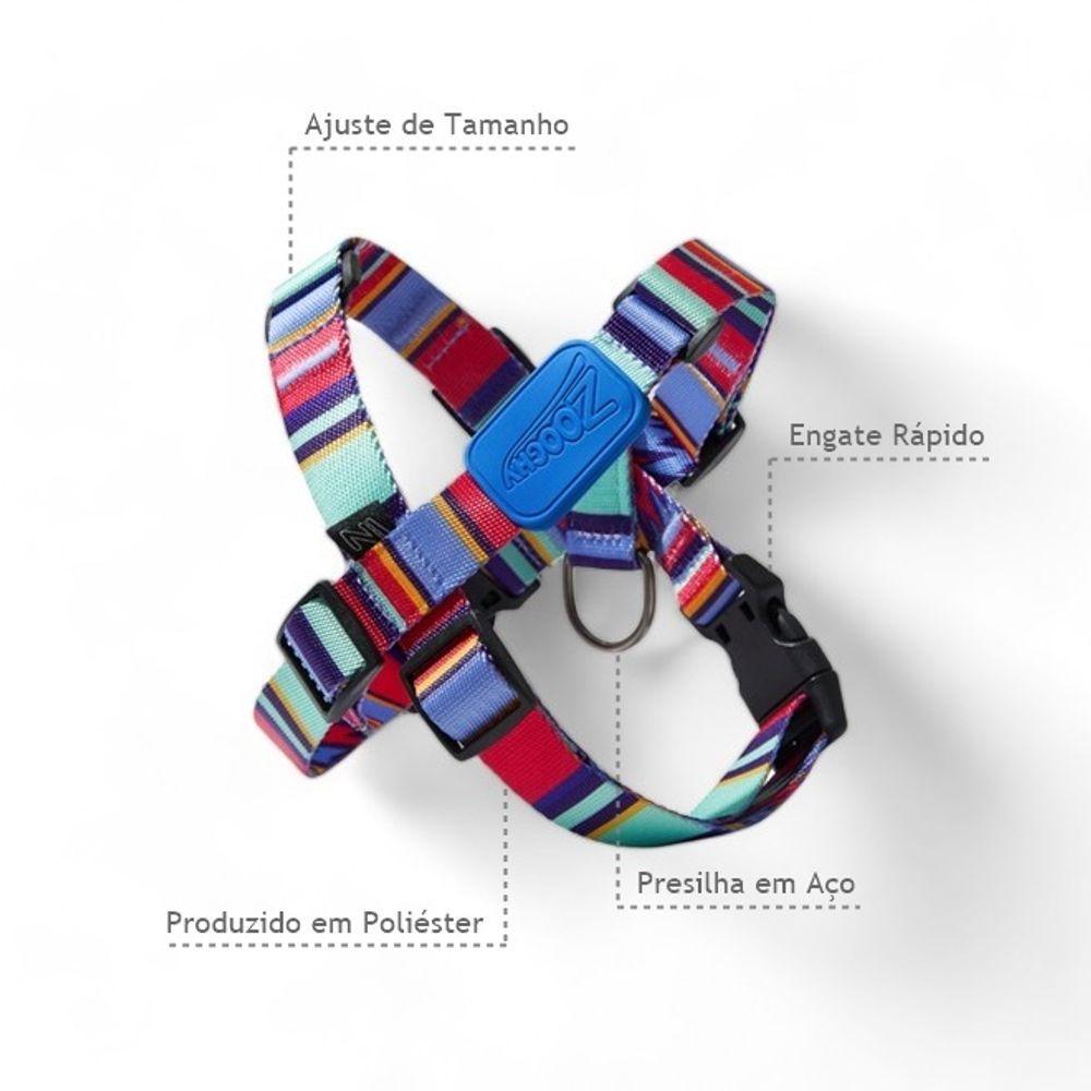 Peitoral Em X E Guia Para Cães Raios E Listras Azul - P