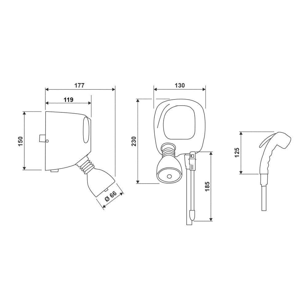 Chuveiro Cardal Florenza Multitemperaturas Preto 7800W 220VChuveiro Cardal Florenza Multitemperaturas Preto - 220V - 7800WCaracterísticas Gerais do Produto:- Cor: Preto- Material: Plástico com espalhador em inox- Com Pressurizador: Não- Compatível com DR: Sim- Compatível com Sistemas de Aquecimento: Sim- Comprimento da Haste: 14cm- Dimensões AxLxP (mm): 230x130x177- Disjuntor (A): 40A (220V); 50A (127V)- Fios (mm2): 10mm (127V); 6mm (220V)- Local de Uso: Parede- Observação: Haste acessível: haste seletora com 4 opções de temperatura- Potência: 5500W (127V); 7800W (220V)- Pressão de Funcionamento: 15 a 400kPa (1,5 a 40mca)- Referência: AQ043/1 (127V); AQ043/2 (220V)- Sistema de Aterramento: Sim- Tipo: Multitemperaturas- Voltagem: 127V; 220VAcompanha o produto:- 1 Chuveiro 1 Chuveirinho 1 Haste SeletoraManual de InstruçõesGarantia:- 1 ano junto ao fabricante