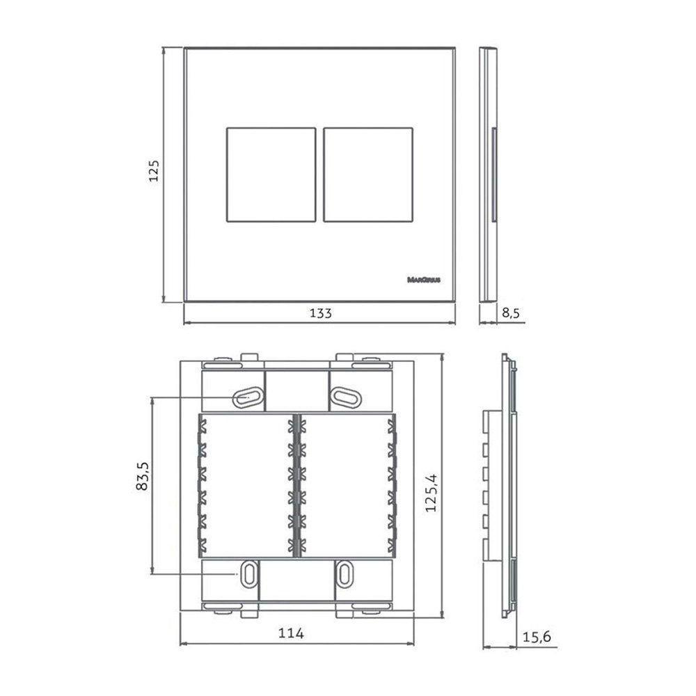Placa Com Suporte Margirius Sleek 4x4 Para 2 Módulos Horizontais Preto EbonyPlaca com Suporte MarGirius Sleek 4x4 para 2 Módulos Horizontais Preto EbonyCaracterísticas Gerais do Produto: Cor: Ebony Material: Placa em ABS com aditivo contra raio-uv e Suporte em PA6 30% fibra de vidro Acabamento: Alto Brilho Acompanha Placa: Sim Acompanha Suporte: Sim Acompanha Módulo: Não Tamanho: 4x4 Tipo: Placa para 2 Módulos Dimensões AxLxP (mm): Placa: 125x133x8,5 - Suporte: 125,4x114x15,6 Linha: Sleek Referência: PA021425 Acompanha o produto: - 1 Placa com Suporte para 2 Módulos Horizontais Parafusos para fixação Garantia: - 5 anos junto ao fabricante