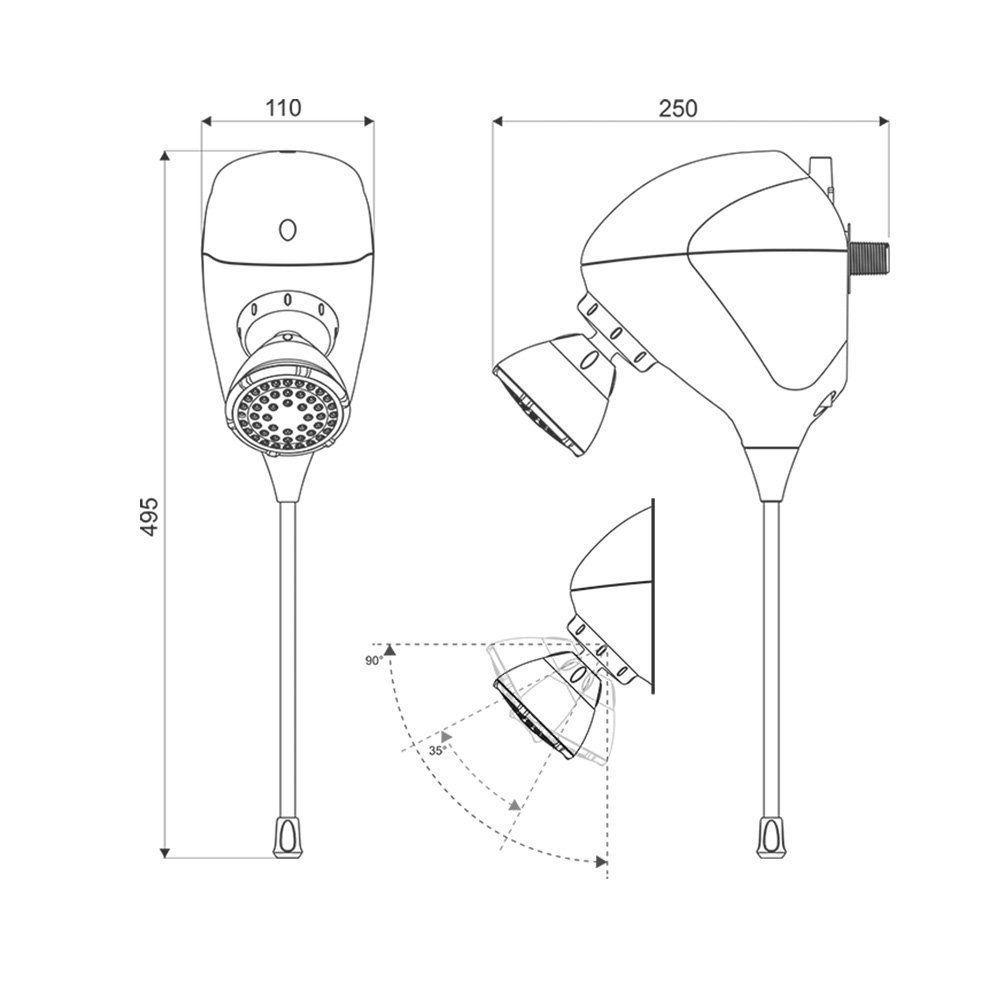 Chuveiro Zagonel Move Eletrônico Blindado Branco 4000W 220VChuveiro Zagonel Move Eletrônico Blindado Branco - 220V - 4000WCaracterísticas Gerais do Produto:Cor: BrancoMaterial: PlásticoDisjuntor (A): 20A (220V)Fios (mm2): 2,5mm (220V)Comando Eletrônico de Temperaturas: SimCompatível com DR: SimCompatível com Sistemas de Aquecimento: SimDimensões AxLxP (mm): 495x110x250Grau de Proteção: IP 24Local de Uso: ParedeObservação: Jato Obediente: água apenas no chuveiro ou apenas no chuveirinhoPotência: 4000W (220V)Pressão de Funcionamento: 10 a 400KPa (1 a 40mca)Referência: DMVEL40220BR16 (220V)Sistema de Aterramento: SimTipo: EletrônicoVoltagem: 220VAcompanha o produto:- 1 Chuveiro 1 Mangueira com Ducha Manual 1 Manual de InstalaçãoGarantia:- 18 meses junto ao fabricante