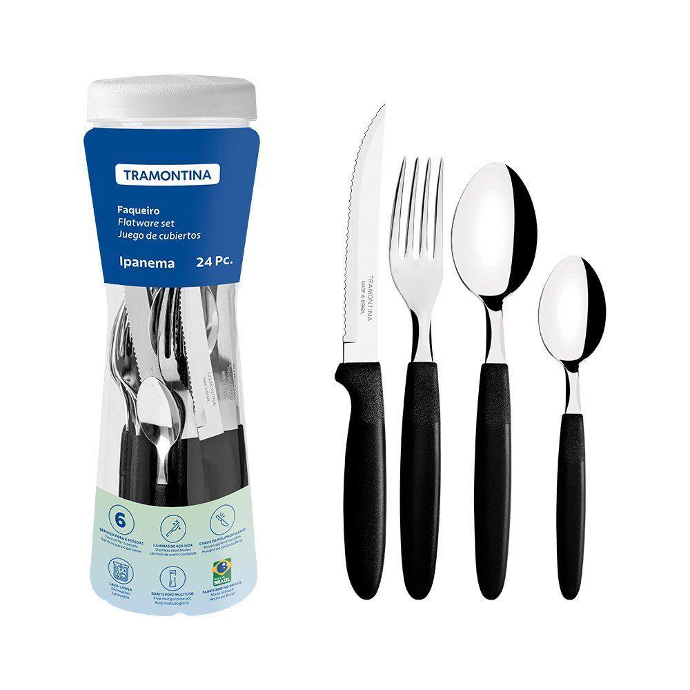 Jogo De Talheres 24 Peças Tramontina Ipanema 23399091 Preto