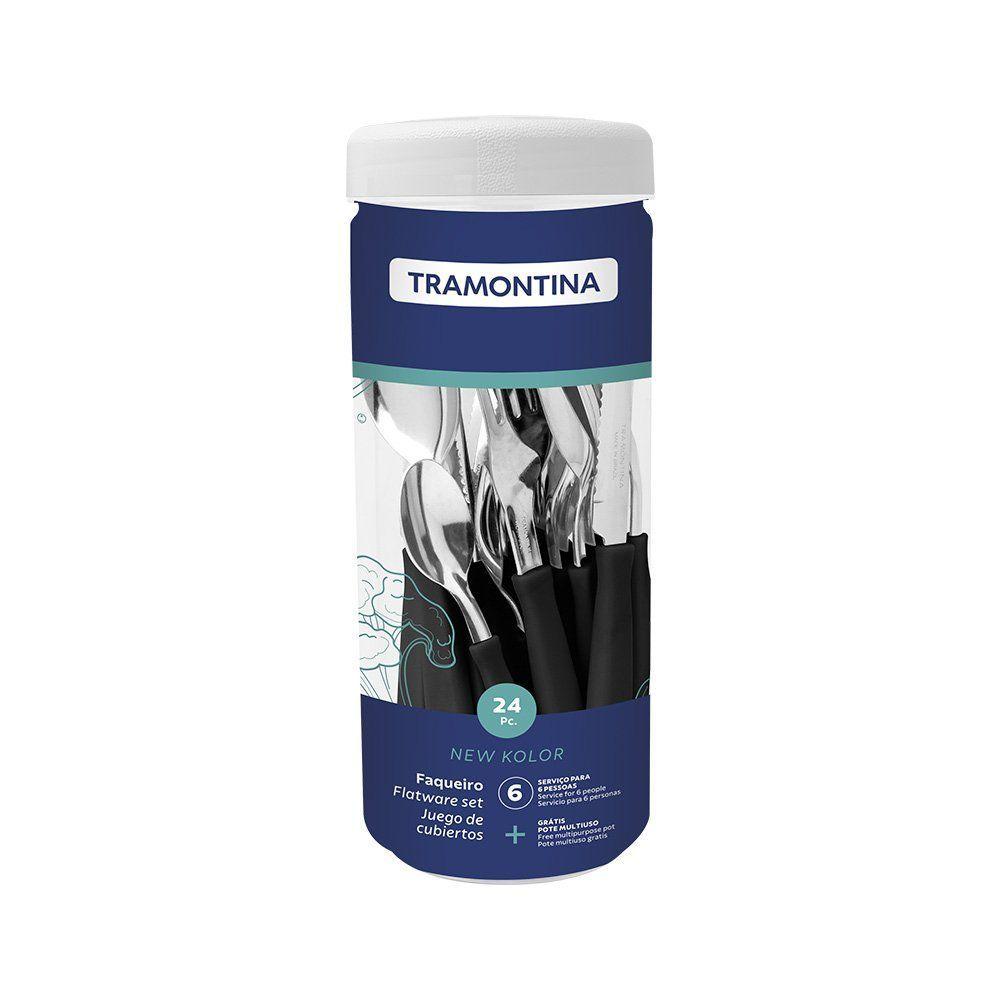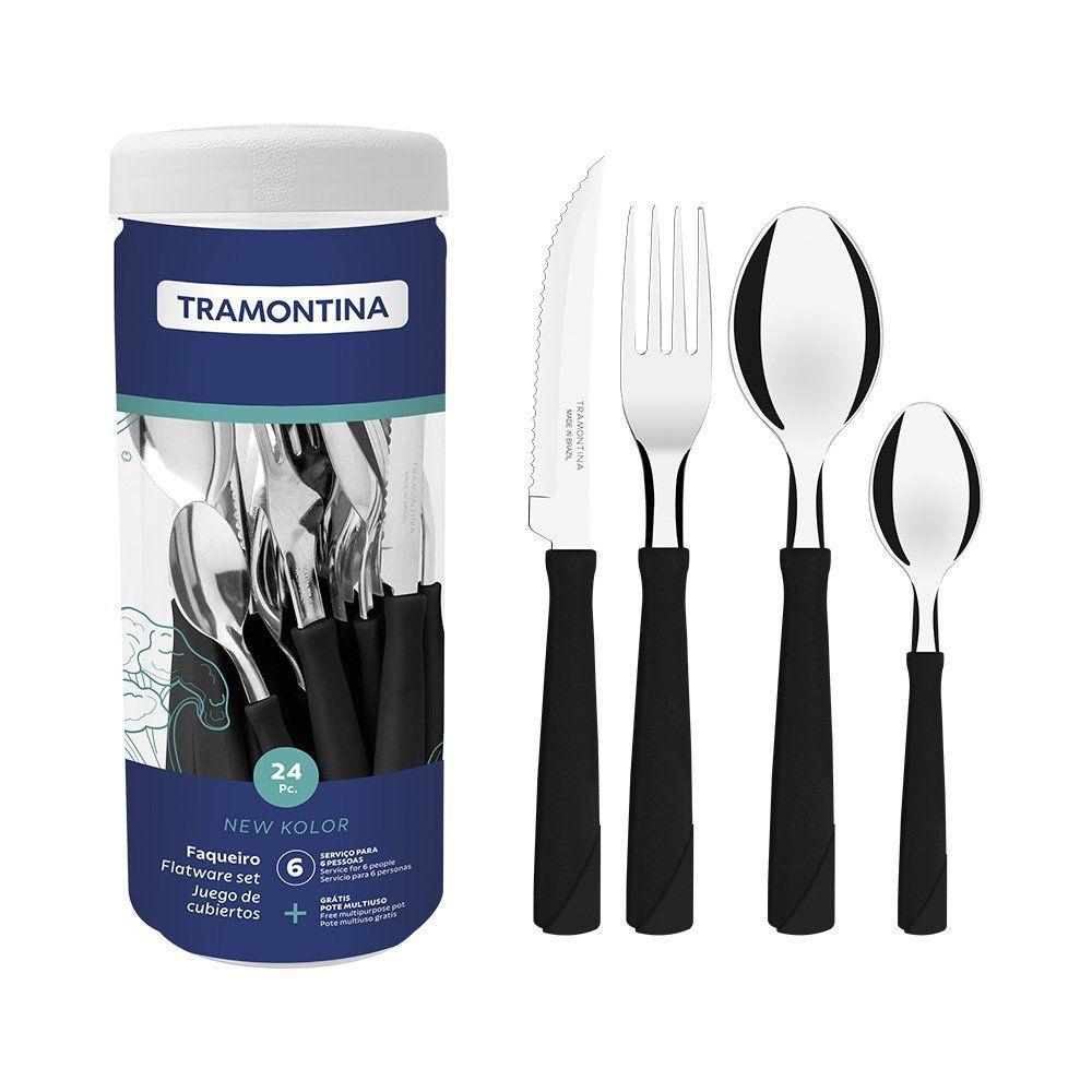 Jogo De Talheres 24 Peças Tramontina New Kolor 23198093 Preto