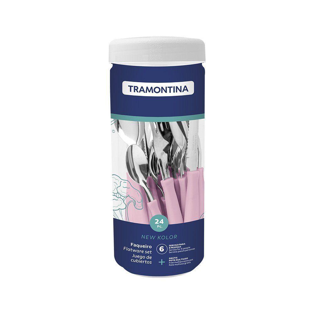 Jogo De Talheres 24 Peças Tramontina New Kolor 23198593 Rosa