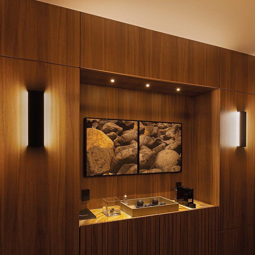 Arandela Stella Reflex Led 42cm Ip65 12w Bivolt Preto - 2700k - Luz AmarelaArandela Stella Reflex Led 42cm IP65 12W Bivolt - Preto - 2700K - Luz AmarelaCaracterísticas Gerais do Produto: Dimensões AxLxP (mm): 420x115x27 Material: Alumínio Local de Uso: Externo IRC (Índice de Reprodução de Cor): >80 Dimerizável: Não Eficiência Luminosa: 67lm/W a 92lm/W Vida Útil: 25.000 horas Modelo/Tecnologia: LED Embutido Ângulo de Abertura: 110° / 110° Fator de Potência: >0,92 Fluxo Luminoso: 800 lúmens (PTO/2700K); Grau de Proteção: IP 65 Observação: Com luz indireta Acompanha o produto: - 1 Arandela Garantia: - 2 anos junto ao fabricante