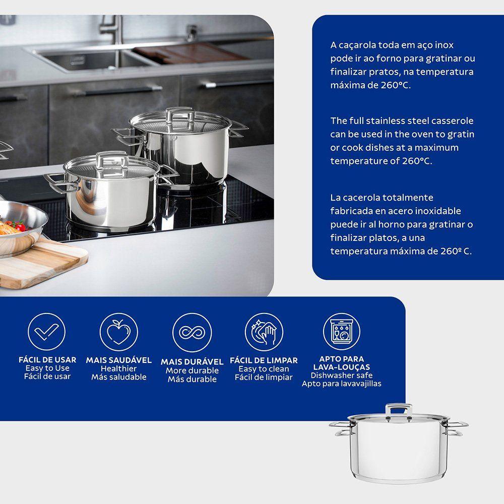 Caçarola Rasa Fundo Triplo Tramontina Brava 62403200 Inox