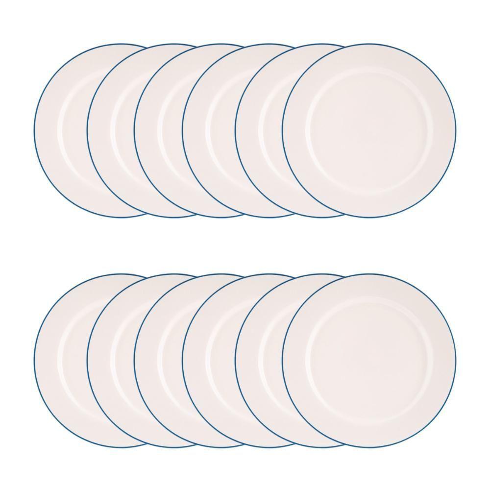 Jogo De Pratos Rasos 12 Pcs Filete Azul Porcelana Real By Schmidt