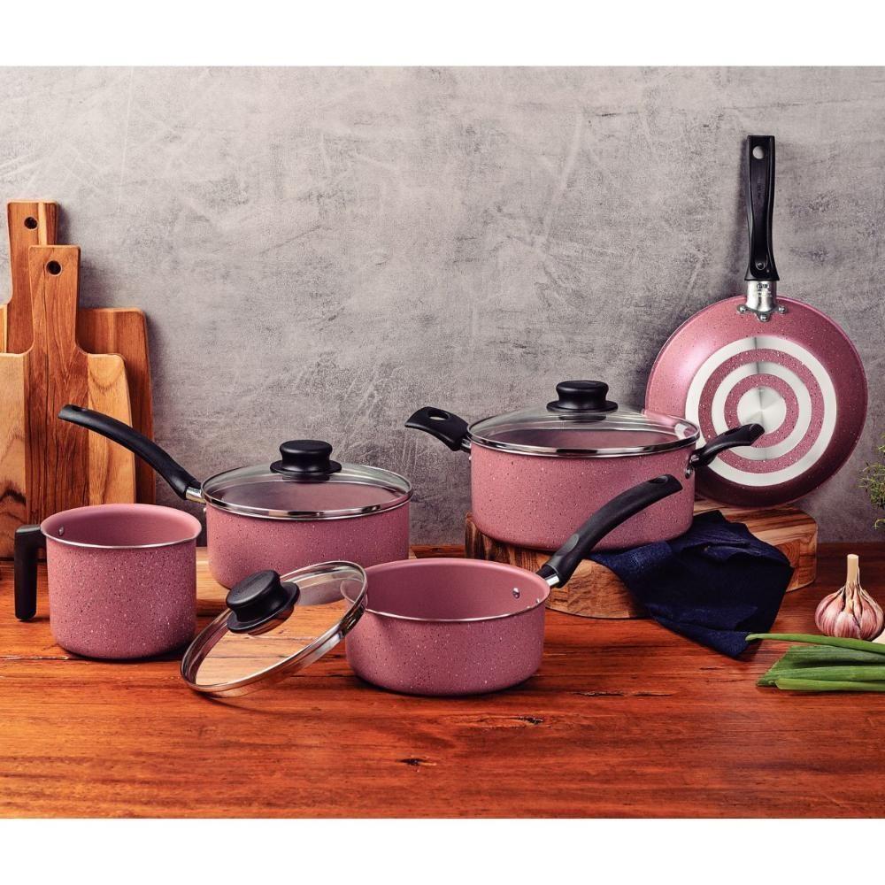 Jogo De Panelas 6 Peças Com Panela Pressão TramontinaJogo de Panelas 6 Peças com Panela Pressão TramontinaSeja qual for a receita que você vai preparar, é essencial contar com itens de qualidade, como o jogo de panelas Tramontina Turim e a Panela de Pressão Vancouver em alumínio com revestimento interno e externo em antiaderente Starflon Max. Aptas para uso no dia a dia, suas peças garantem maior segurança e facilidade na hora preparar suas refeições, pois contam com cabos, alças e pegadores em baquelite e nylon e vem com tampas de vidro temperado com borda de aço inox. Você ainda cozinha de maneira rápida e uniforme, sem que os alimentos grudem em sua superfície e tem facilidade na limpeza, pois o corpo das peças tem produção em alumínio com revestimento em antiaderente Starflon Max. Escolha Tramontina e deixe suas tarefas na cozinha, ainda melhores!Descrição:Linha Comercial: Turim e Vancouver.Quantidade: 6 Peças.Revestimento Interno: Antiaderente Starflon Max.Material: Alumínio com espessura de 1,2 mm que proporciona cozimento rápido e uniforme.Podem ir à máquina de lavar louças.Tipo de Fogão: Gás, Elétrico, Vitrocerâmico - resistência elétrica.ATENÇÃO: Não compatível com fogão de indução.Conteúdo:1 - Frigideira 20 cm 0,8 L Turim Rosa1 - Caçarola 20 cm 2,8 L Turim Rosa1 - Panela 16 cm 1,4 L Turim Rosa1 - Panela 18 cm 2,0 L Turim Rosa1 - Fervedor 12 cm 1,1 L Turim Rosa1 - Panela de Pressão com tampa escovada 20cm 4,5L Vancouver PretaImagens meramente ilustrativas, todos os itens que ambientam o produto não estão inclusos. Marca: Tramontina | Fabricante: Tramontina | Origem: Nacional | Modelo: Jogo de panelas | Condição do Item: Novo | É Kit: Sim | É apto para lava-louças: Sim | Material do cabo: Baquelite e nylon | Linha: Turim e Vancouver | Regulamentação Produto Perigoso: Não aplicável | Quantidade de peças: 6 | Com revestimento antiaderente: Sim | Revestimento interno: Antiaderente Starflon Max | Adequado para fogão de indução: Não | Materiais: Alumínio | É kit de fábrica: Não