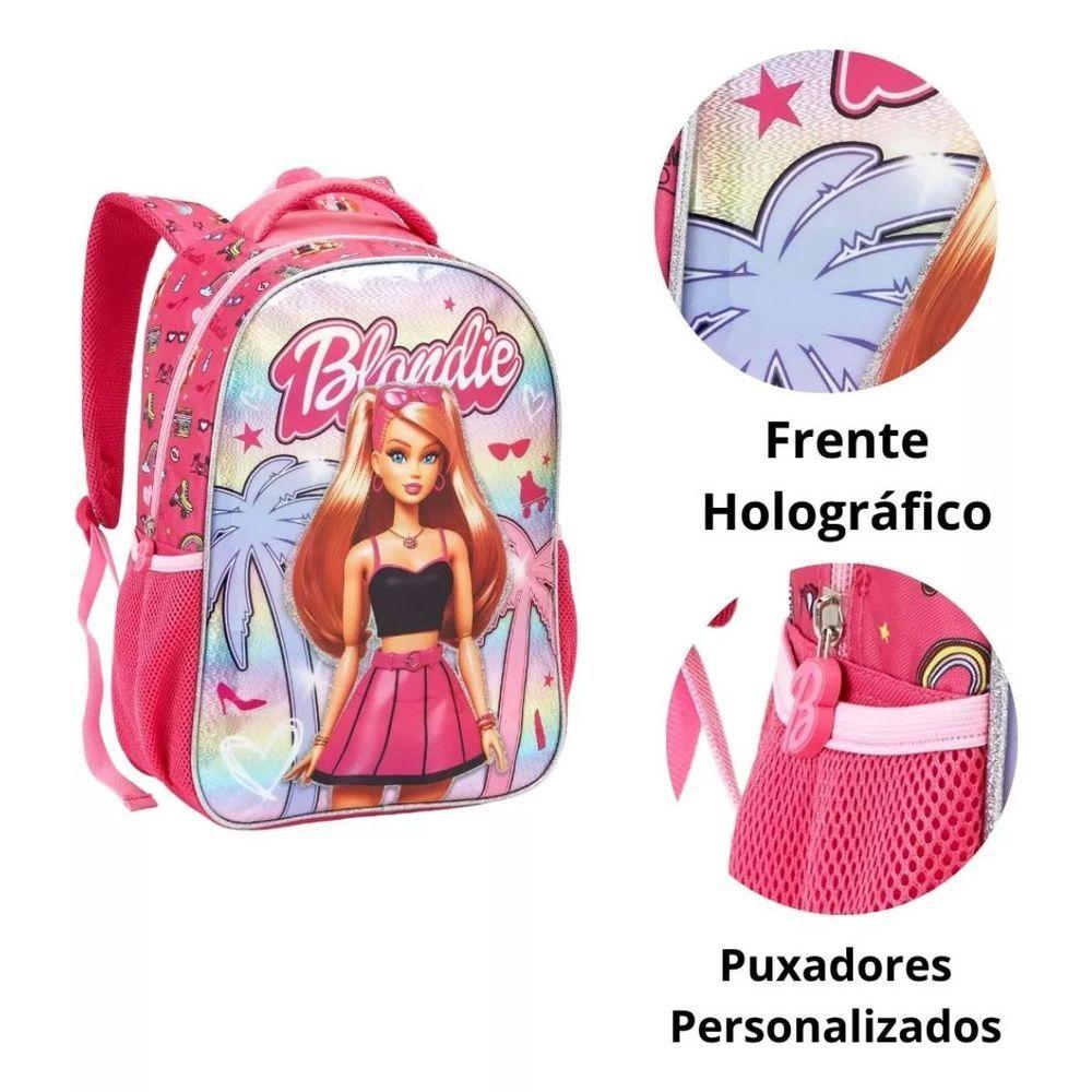 Mochila Costas Barbie Princess Blondie Escolar SeaniteMochila Costas Barbie Princess Blondie Escolar SeaniteA Mochila Costas Barbie Princess Blondie da Seanite é perfeita para meninas que amam o universo Barbie e querem levar esse brilho para o dia a dia escolar. Inspirada no estilo Barbiecore, essa mochila une moda e funcionalidade, tornando cada momento na escola ainda mais especial.Com um design vibrante e detalhes encantadores, essa mochila possui um compartimento principal espaçoso para armazenar livros, cadernos e outros materiais. Além disso, conta com bolsos laterais ideais para garrafinhas e pequenos acessórios, garantindo mais praticidade na organização.Especificações:- Dimensões aproximadas: 43 cm (altura) x 31 cm (largura) x 14 cm (profundidade)- Capacidade: 18 litros- Material: 70% poliéster e 30% PVC- Bolsos laterais para garrafa- Frente holográfica com acabamento especial- Puxadores personalizados- Identificador no versoLeve o estilo e o encanto da Barbie para a escola com essa mochila incrível!