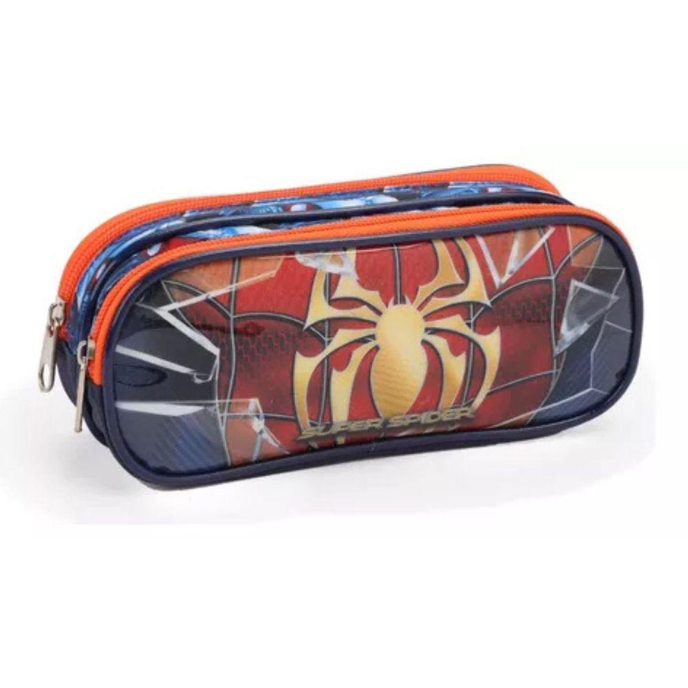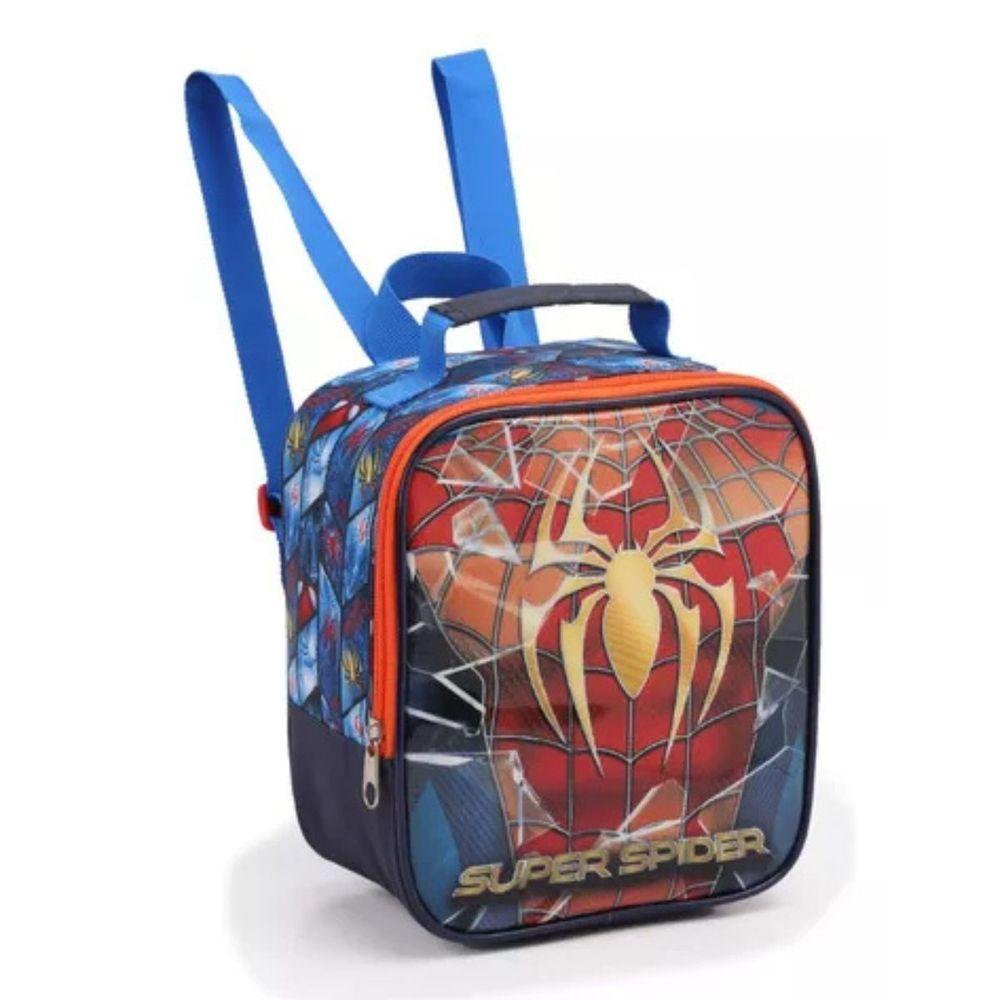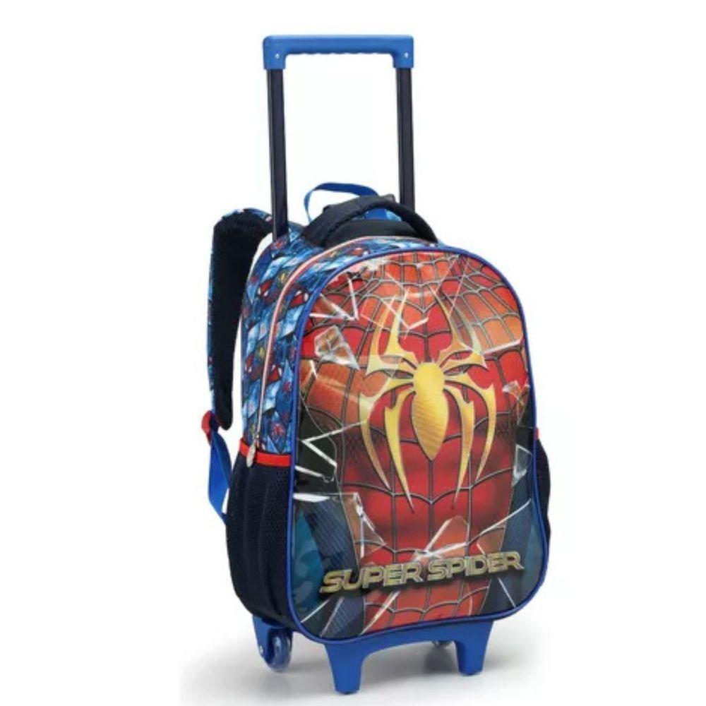 Kit Mochila Rodinhas Lancheira Estojo Homem Aranha Start Infantil Juvenil Super Spider Man Azul Seanite