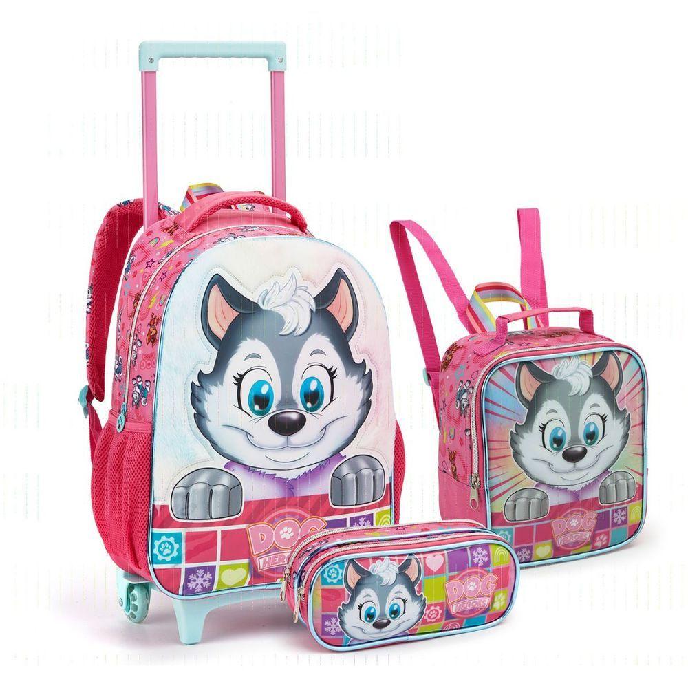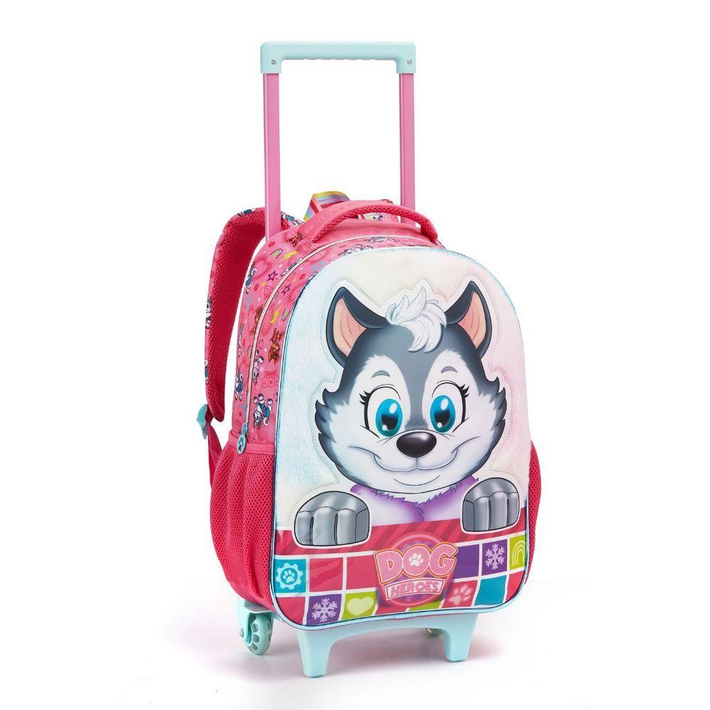 Kit Mochila Rodinhas Dog Heroes Escolar Cachorros Heróis Infantil Menina Seanite