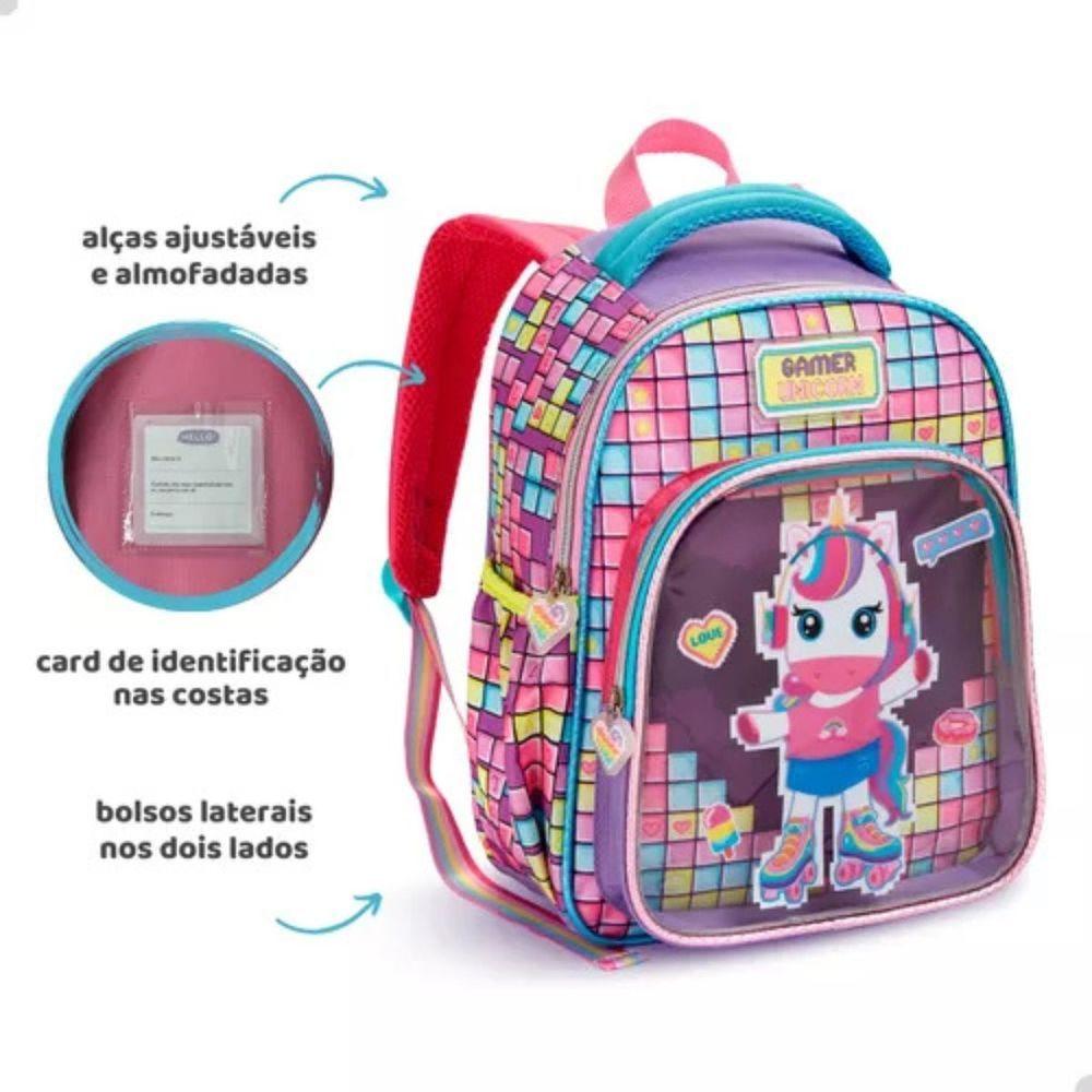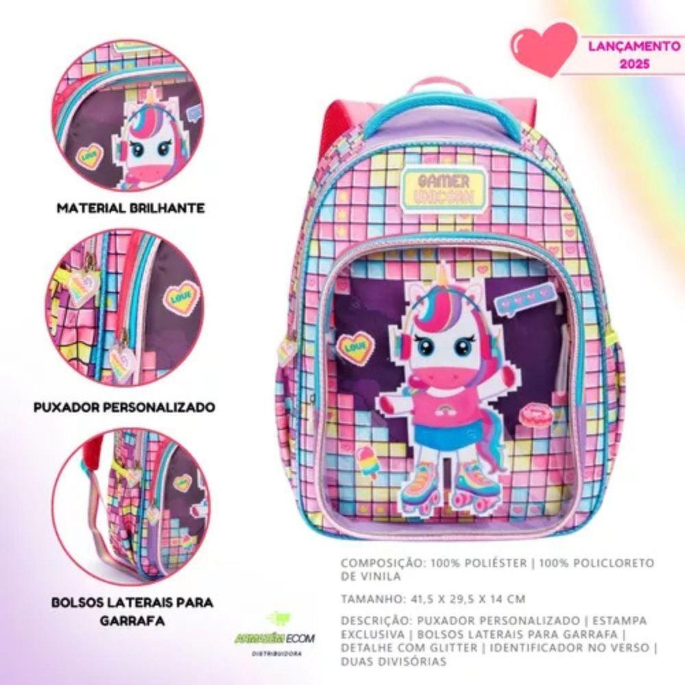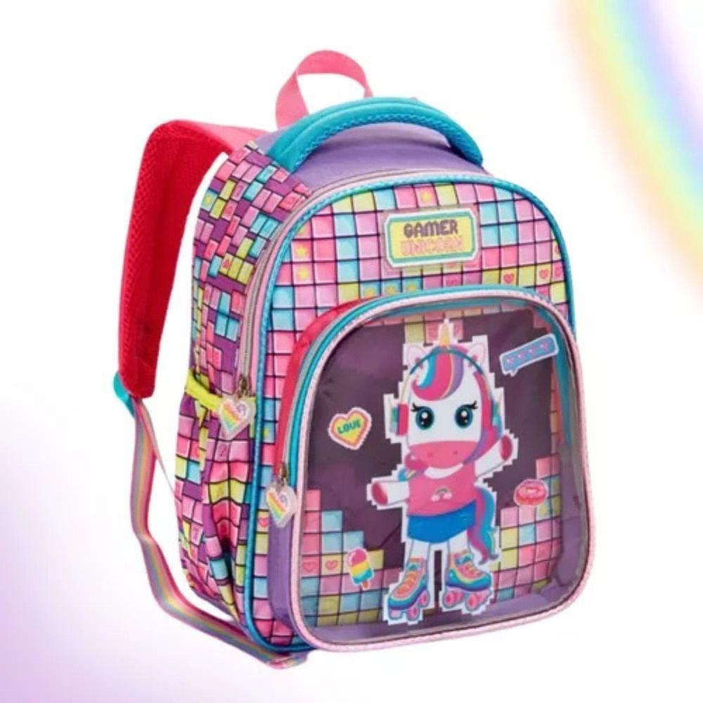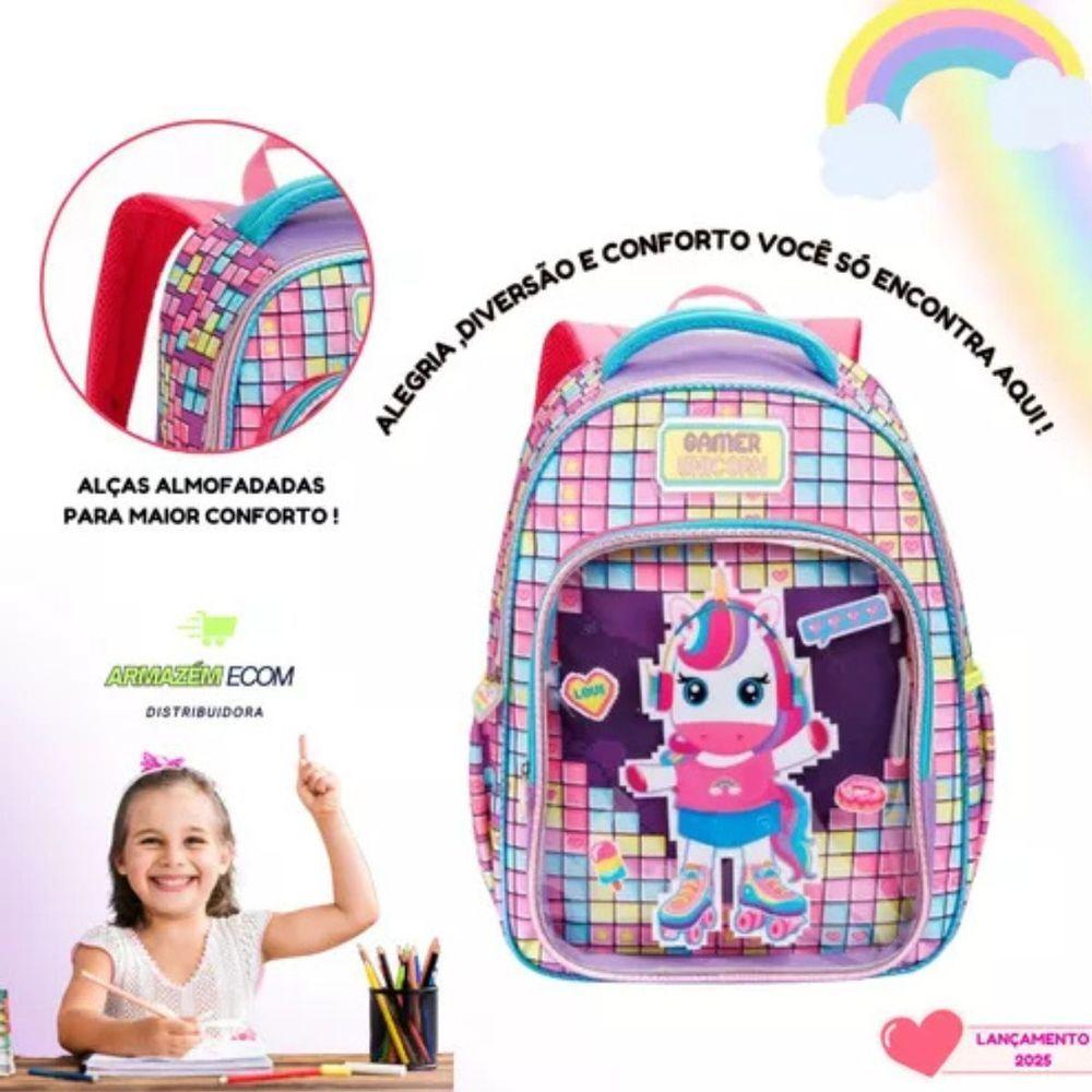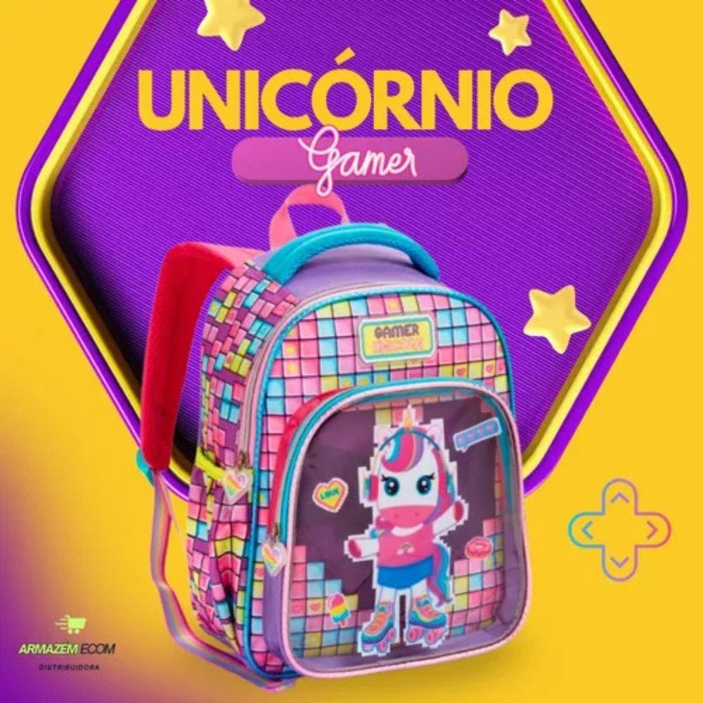 Mochila Costas Escolar Infantil Unicórnio Gamer Festa Feminina Grande Denlex